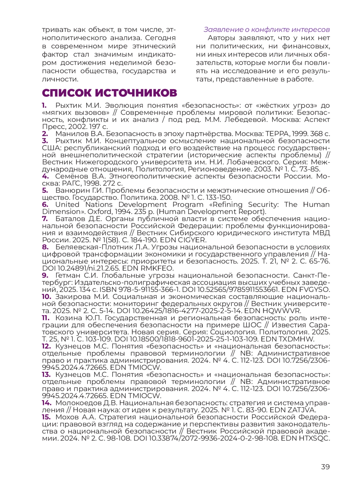 14. Молокоедов Д.В. Национальная безопасность: стратегия и система управления // Новая наука: от идеи к результату. 2025. № 1. С. 83-90.
