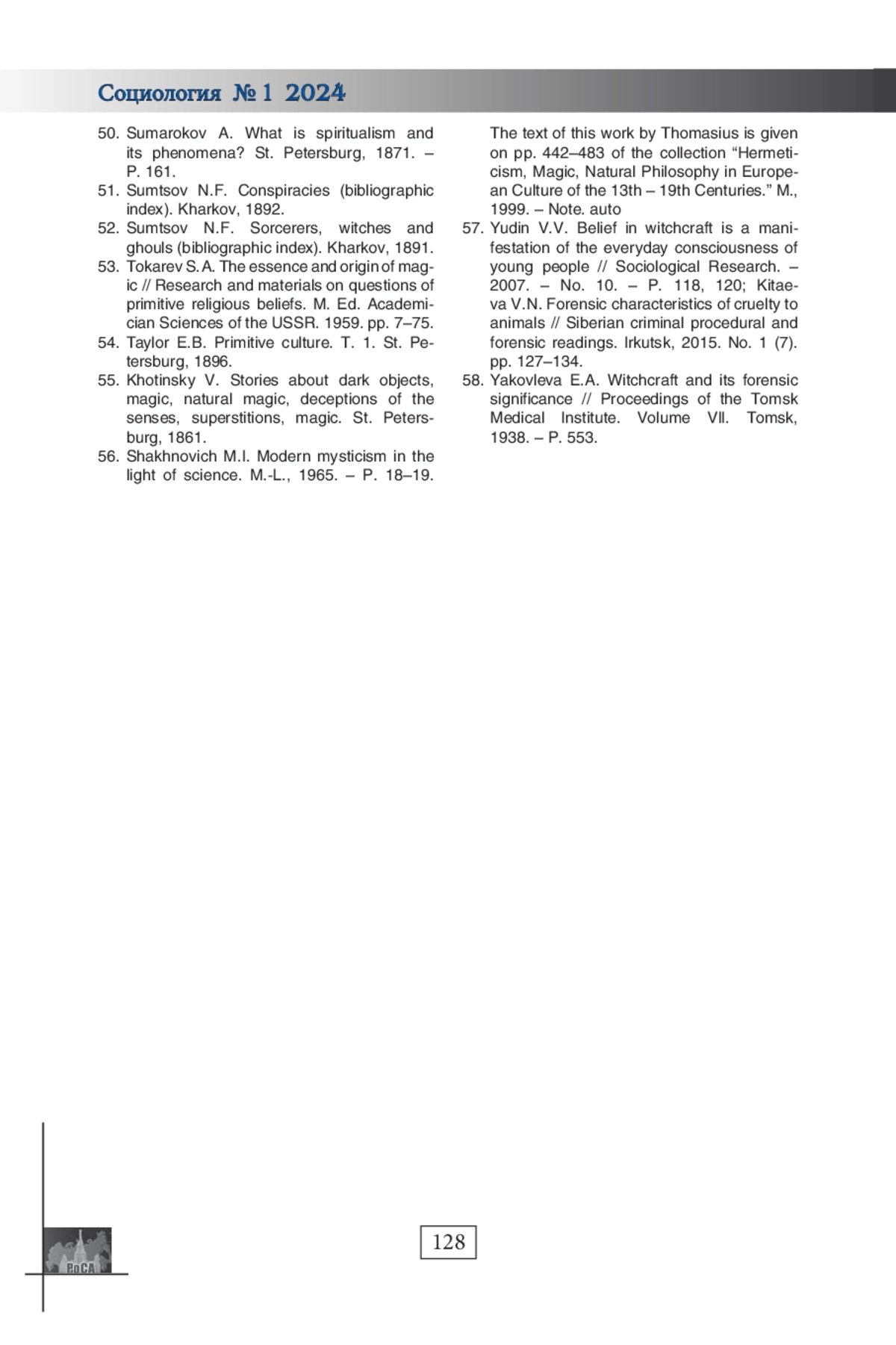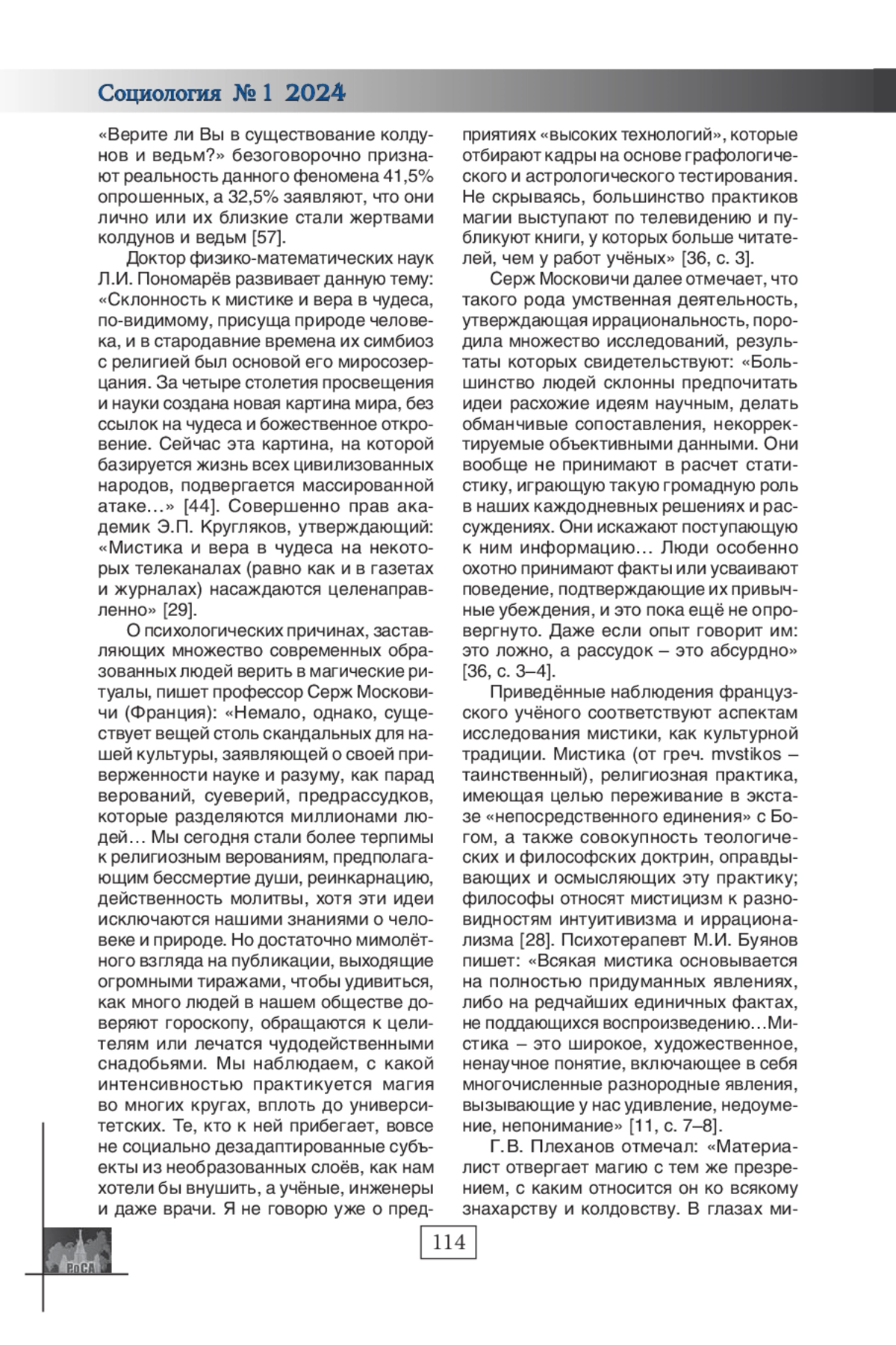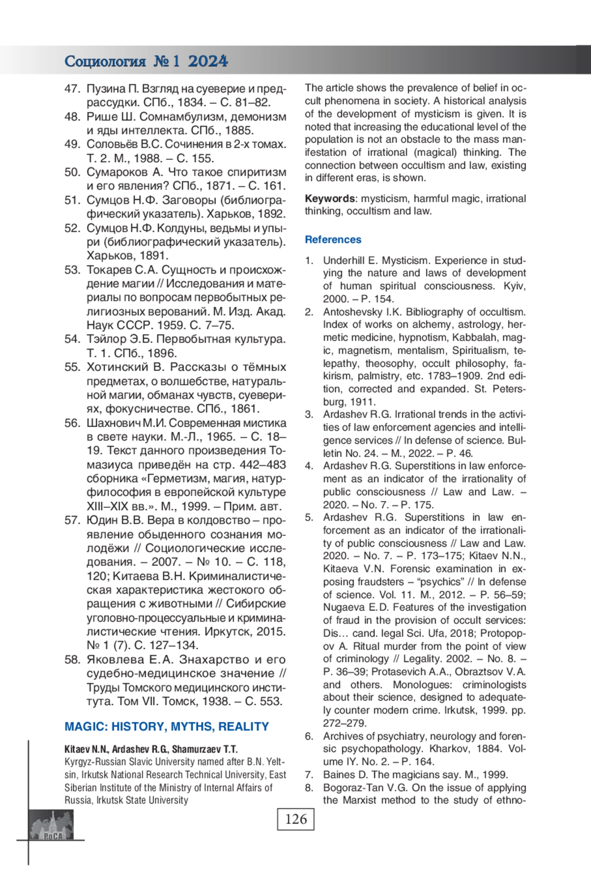 КИТАЕВ Н. Н., АРДАШЕВ Р. Г., ШАМУРЗАЕВ Т. Т. МАГИЯ: ИСТОРИЯ, МИФЫ, РЕАЛЬНОСТЬ // СОЦИОЛОГИЯ. 2024. № 1