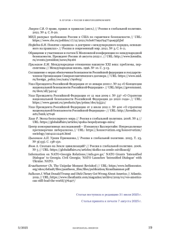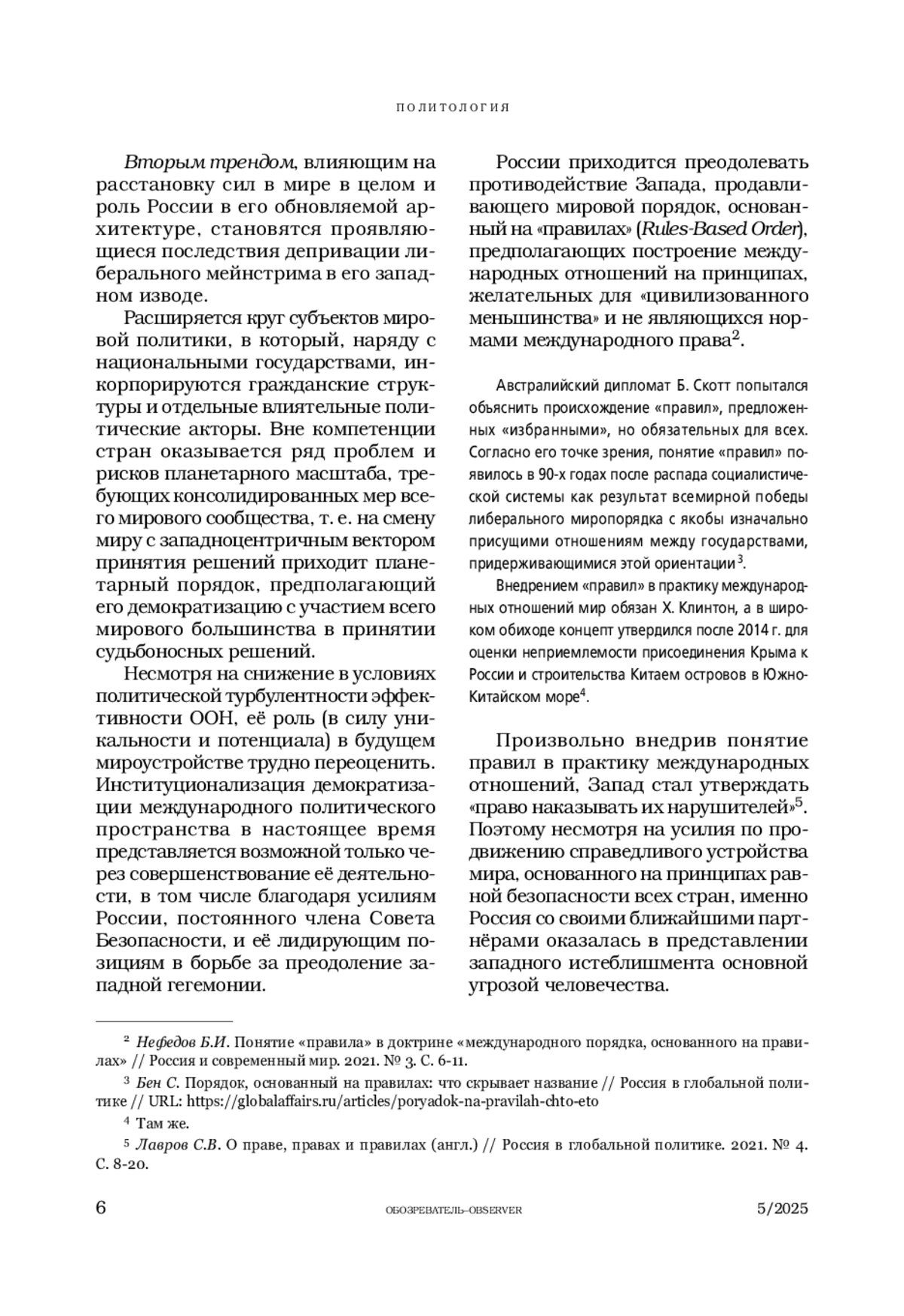 11. Нефедов Б.И. Понятие «правила» в доктрине «международного порядка, основанного на правилах» // Россия и современный мир. 2021. № 3. С. 6-11.