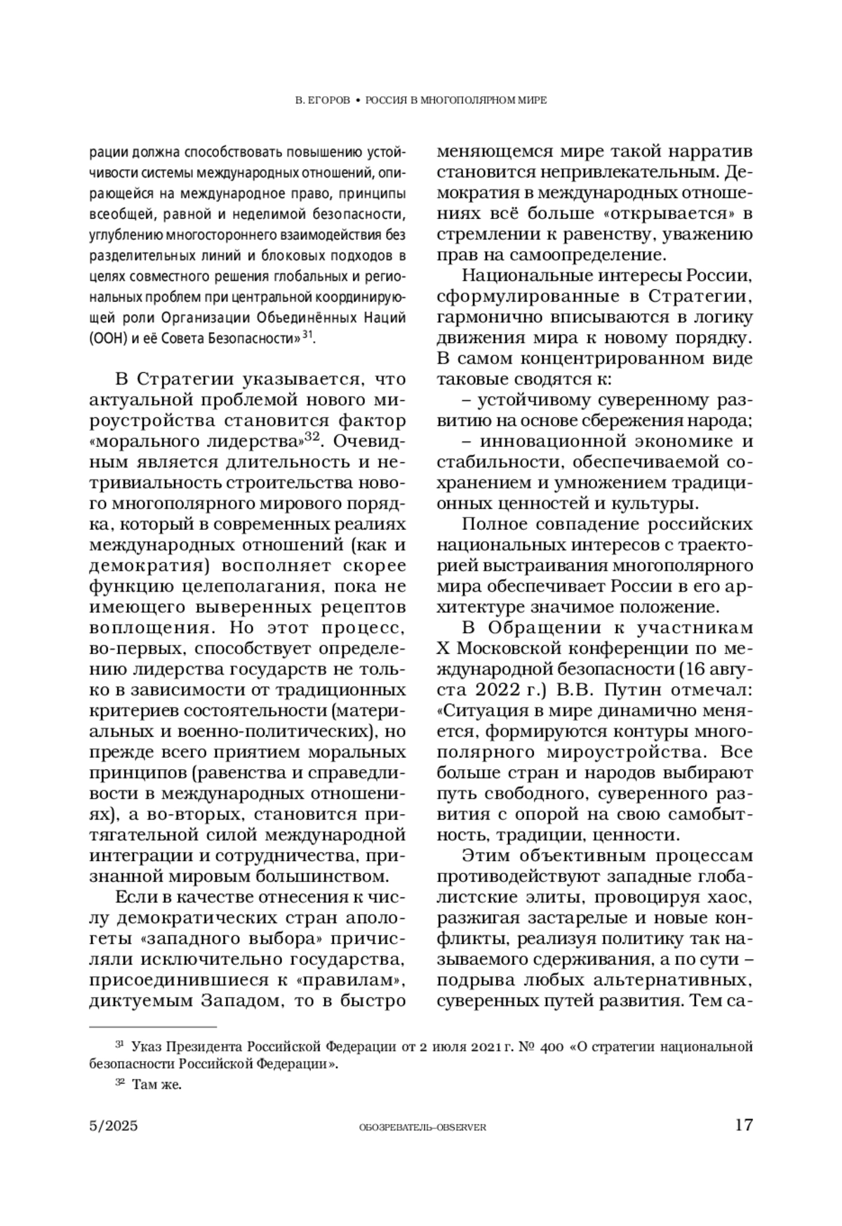 17. Указ Президента Российской Федерации от 2 июля 2021 г. № 400 «О стратегии национальной безопасности Российской Федерации» // URL: http://kremlin.ru/acts/bank/47046
