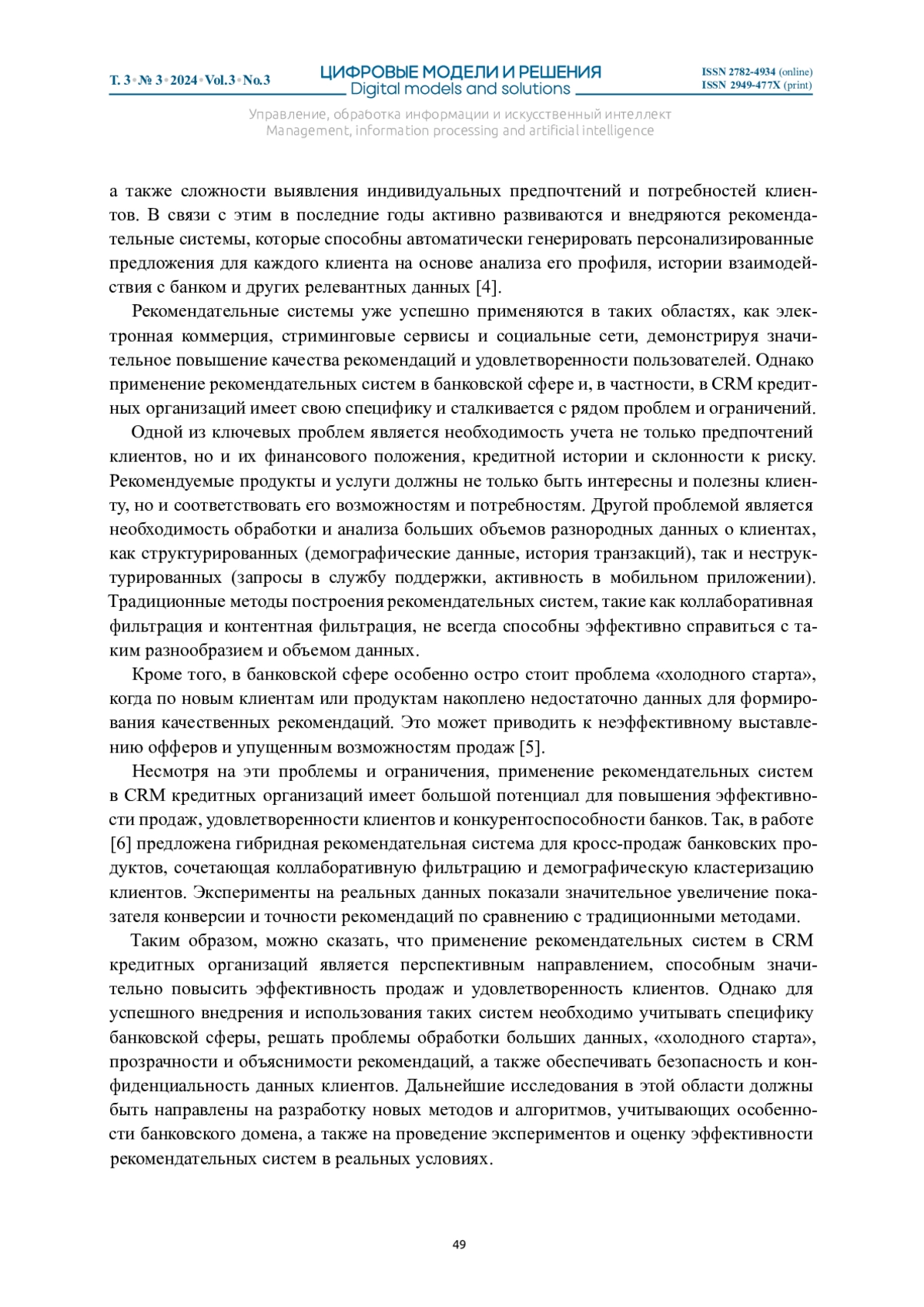 Журнал: ЦИФРОВЫЕ МОДЕЛИ И РЕШЕНИЯ