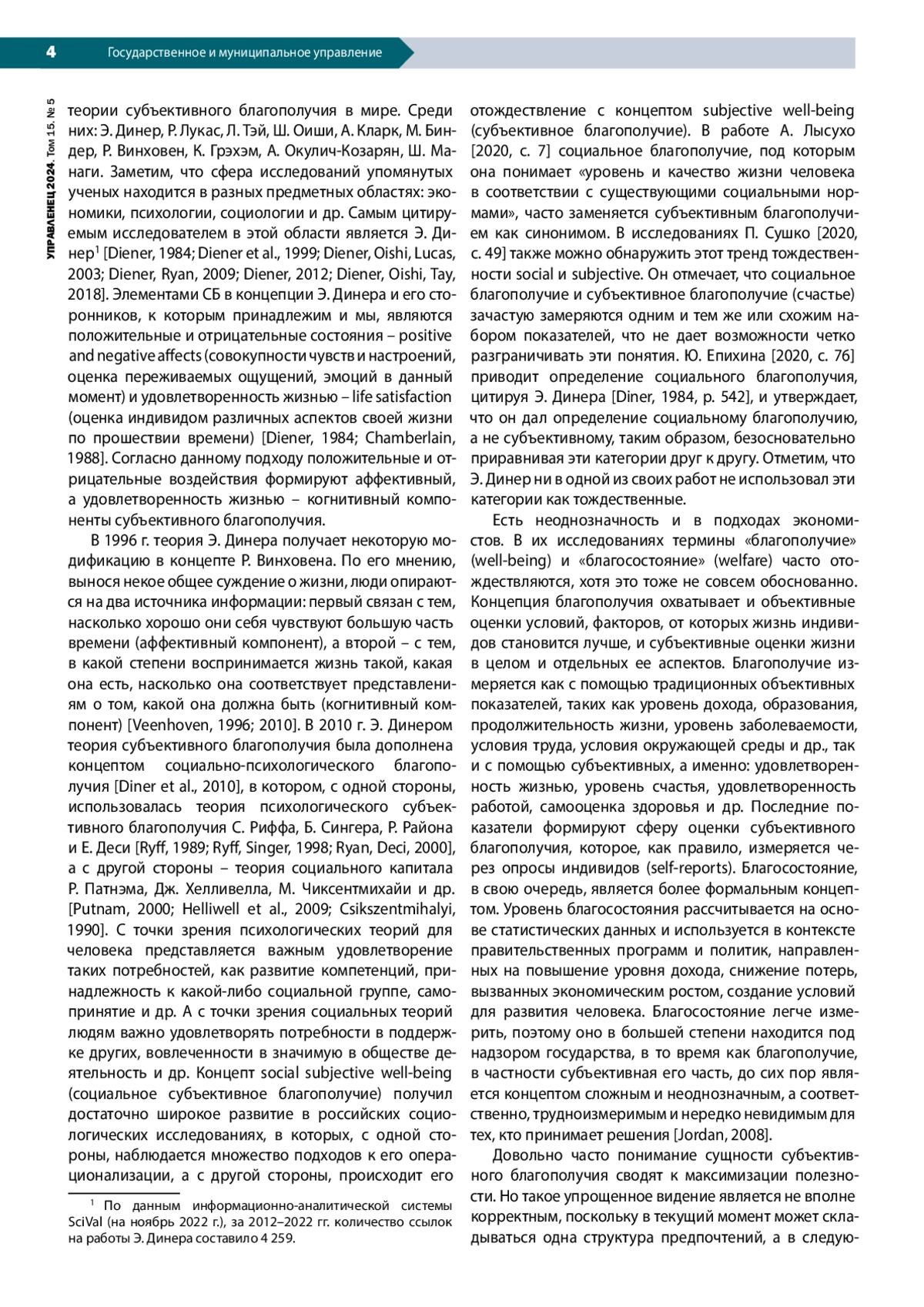 23. Diener E., Lucas R., Oishi S. (2018). Advances and open questions in the science of subjective well-being. Collabra: Psychology, vol. 4, no. 1, pp. 1-49. DOI: 10.1525/collabra.115 EDN: YJSGTB