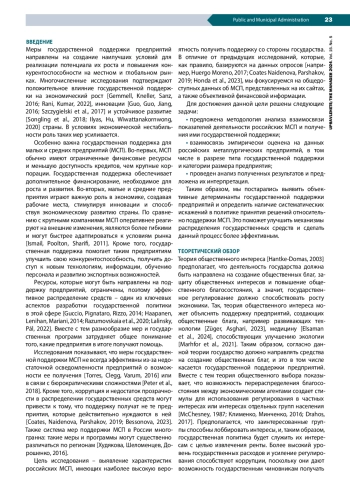 Меры государственной поддержки предприятий направлены на создание наилучших условий для реализации потенциала их роста и повышения конкурентоспособности на местном и глобальном рынках. Многочисленные исследования подтверждают положительное влияние государственной поддержки на экономический рост [Gemmell, Kneller, Sanz, 2016; Rani, Kumar, 2022], инновации [Guo, Guo, Jiang, 2016; Szczygielski et al., 2017] и устойчивое развитие [Songling et al., 2018; Ilyas, Hu, Wiwattanakornwong, 2020] страны. В условиях экономической нестабильности роль таких мер усиливается