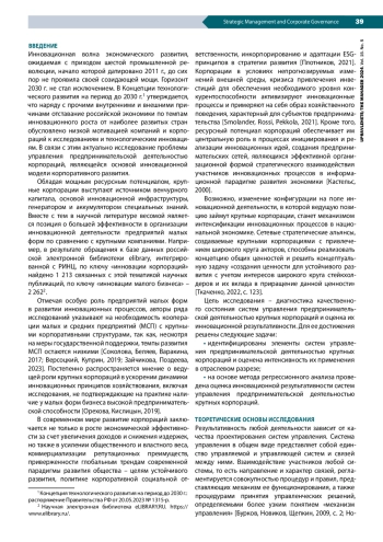 Отставание российской экономики по темпам инновационного роста от наиболее развитых стран требует поиска релевантных подходов к управлению социально-экономическими системами для сохранения их конкурентоспособности и устойчивого развития. Крупные корпорации обладают значимым ресурсным потенциалом и публичным весом, в связи с чем необходимо совершенствовать управление их предпринимательской деятельностью, являющейся импульсом инновационного развития. Статья посвящена диагностике качественного состояния систем управления предпринимательской деятельностью крупных корпораций и оценке их инновационной результативности. Методологическую базу исследования составили теории корпоративного управления и менеджмента. Методы работы включают качественный, регрессионный и сравнительный анализ. Информационную базу составили данные 160 корпораций рейтинга ТОП-600 RAEX (2023 г.), представляющих 21 отрасль промышленности, а также данные Федеральной службы государственной статистики и Всероссийской системы данных о компаниях и бизнесе «За честный бизнес» за 2010–2022 гг. В результате исследования идентифицированы 19 элементов системы управления предпринимательской деятельностью крупных корпораций (наличие центра научных разработок, поддержка стартапов, приверженность концепции открытых инноваций, корпоративный венчурный фонд и т. п.) и оценена интенсивность их применения в отраслевом разрезе. Кроме того, не обнаружена статистическая связь между показателями деятельности многих корпораций и объемом отгруженной инновационной продукции. Таким образом, выявлено отсутствие инновационной результативности систем управления предпринимательской деятельностью большого числа корпораций, что требует дальнейшего исследования их качественного состояния