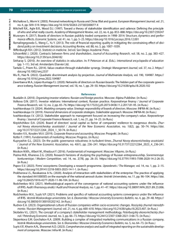 62. Zavertiaeva M.A., López-Iturriaga F.J. (2020). Networks of directors on Russian boards: The hidden part of the corporate governance iceberg. Russian Management Journal, vol. 18, no. 1, pp. 29-50. DOI: 10.21638/spbu18.2020.102 EDN: XQUXAF