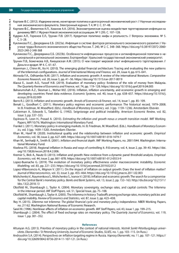 2. Андрюшин С.А. (2014). Перспективы режима таргетирования инфляции в России // Вопросы экономики. № 11. С. 107-121. Андрюшин С.А. (2015). Аргументы в пользу управления обменным курсом рубля // Вопросы экономики. № 12. С. 51-68. EDN: UXMGOT