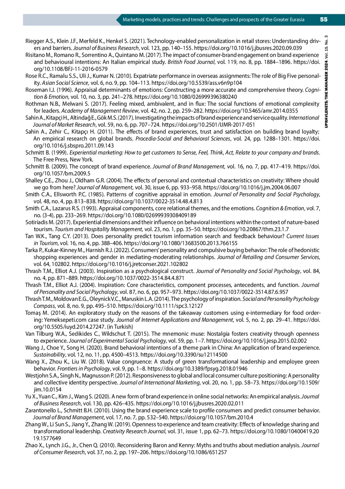 68. Özhan S., Altug N., Deniz E. (2018). The influence of openness to experience and nostalgia proneness on brand loyalty. Journal of Advances in Management Research, vol. 15, no. 4, pp. 500-513. DOI: 10.1108/JAMR-11-2017-0106