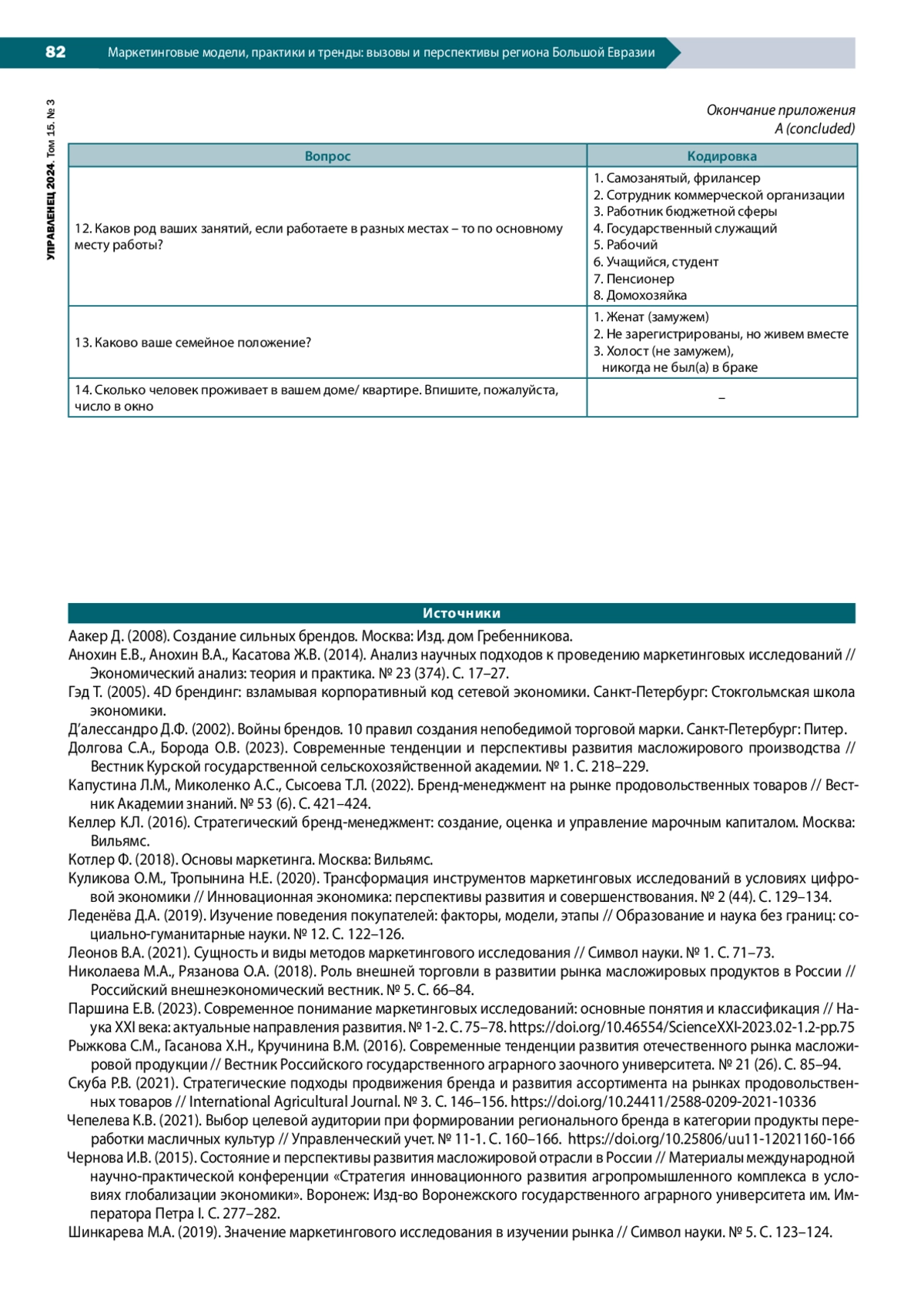 4. Д’алессандро Д.Ф. (2002). Войны брендов. 10 правил создания непобедимой торговой марки. Санкт-Петербург: Питер. Долгова С.А., Борода О.В. (2023). Современные тенденции и перспективы развития масложирового производства.