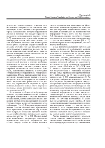 7. Ярошенко П.В. Модели перевода сенсорной лексики (на материале корпуса множественных переводов). URL: https://conference-spbu.ru/conference/50/reports/17918 (дата обращения: 14.01.2025).