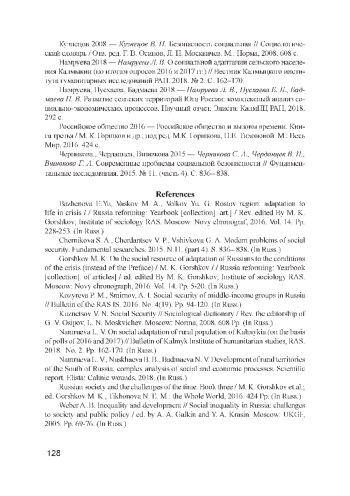 1. Баженова Е. Ю., Васьков М. А., Волков Ю. Г. Ростовская область: адаптация к жизни в условиях кризиса // Россия реформирующаяся: Ежегодник [сб. науч. ст.] / отв. ред. М. К. Горшков; Институт социологии РАН. М.: Новый хронограф, 2016. Вып. 14. С. 228-253.