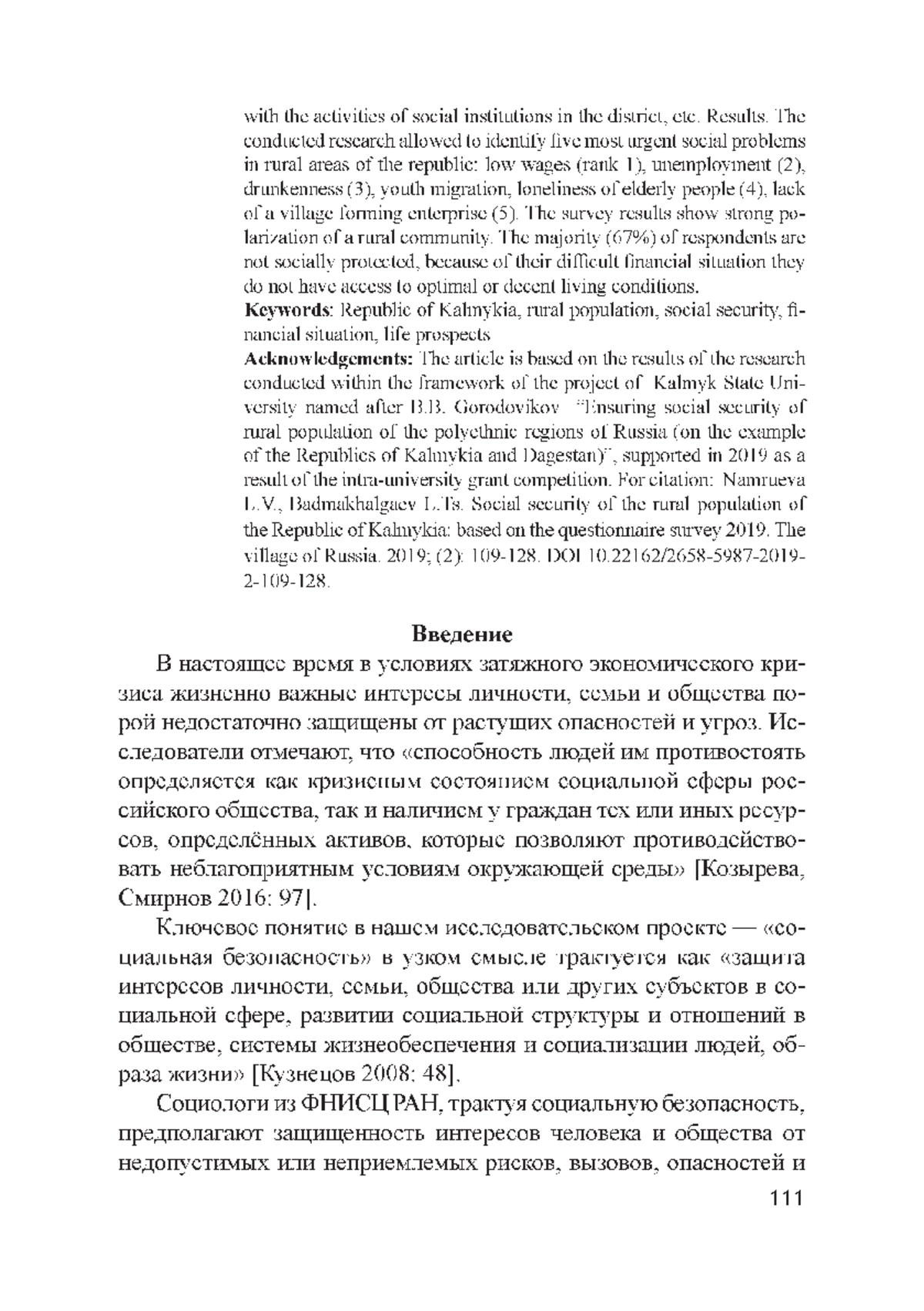 7. Намруева Л. В., Нусхаева Б. Б., Бадмаева Н. В. Развитие сельских территорий Юга России: комплексный анализ социально-экономических процессов. Научный отчет. Элиста: КалмНЦ РАН, 2018. 292 с.