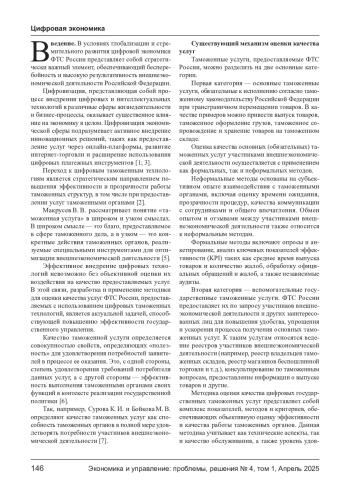2. Бынкина А. В., Глаголева А. А. Управление качеством таможенных услуг: проблемы и перспективы развития // Экономика и бизнес: теория и практика. - 2022. - № 10-1. EDN: IXFKKE