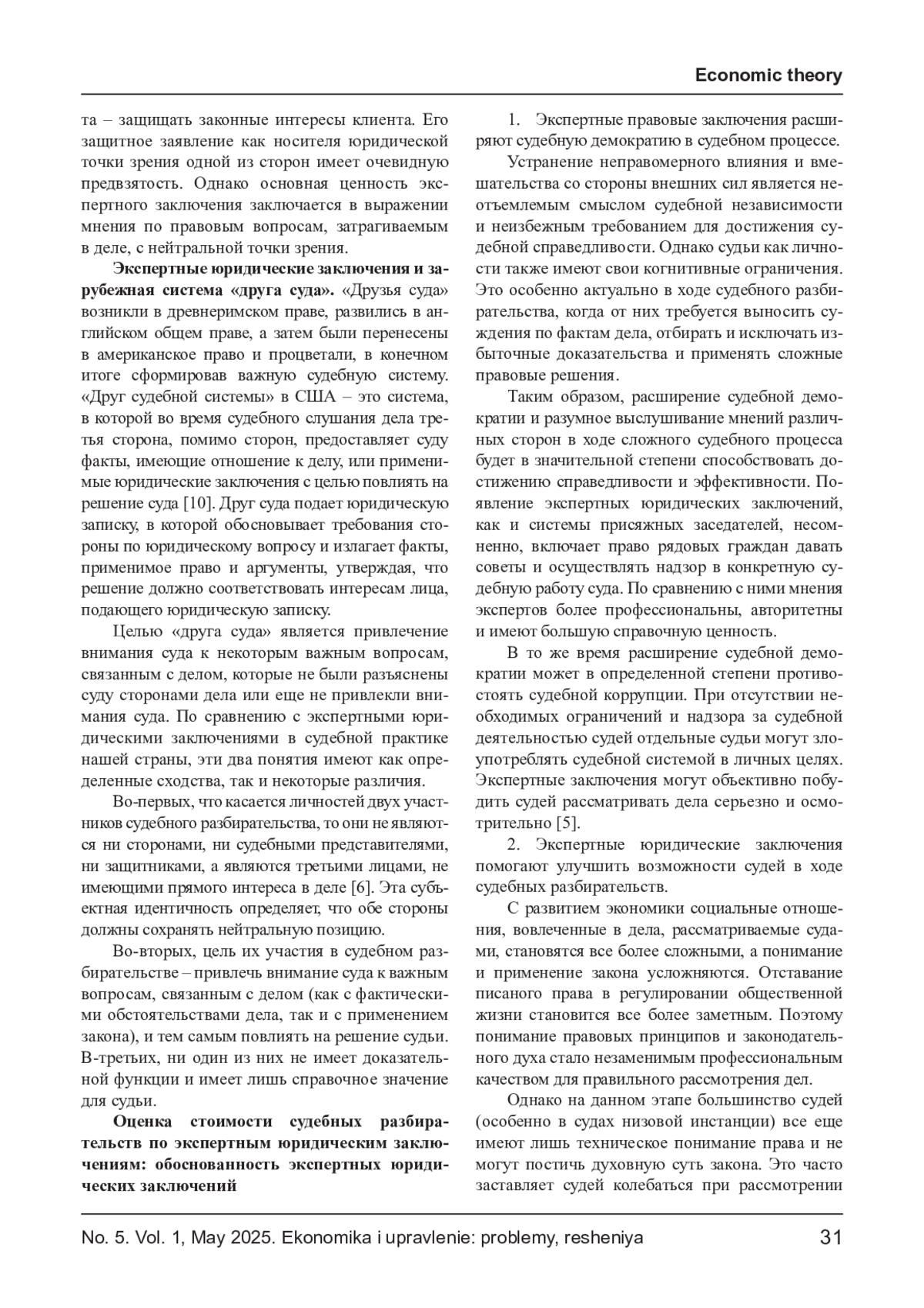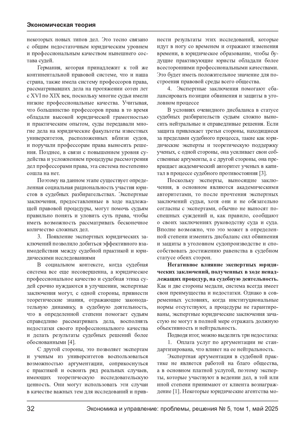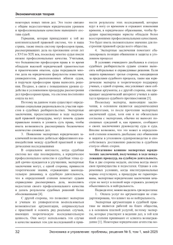 Статья: ОЦЕНКА ЮРИДИЧЕСКОЙ ЦЕННОСТИ ЭКСПЕРТНЫХ ЗАКЛЮЧЕНИЙ И ИХ ПРИМЕНЕНИЕ В СУДЕБНОЙ ДЕЯТЕЛЬНОСТИ СОВРЕМЕННОЙ ЭКОНОМИЧЕСКОЙ СИСТЕМЫ (2025)