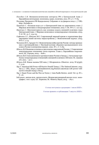 4. Виноградов И. С. Китай и Россия во внешней политике и экономике Туркменистана // Китай в мировой и региональной политике. История и современность. 2022. №27. С. 240-253.