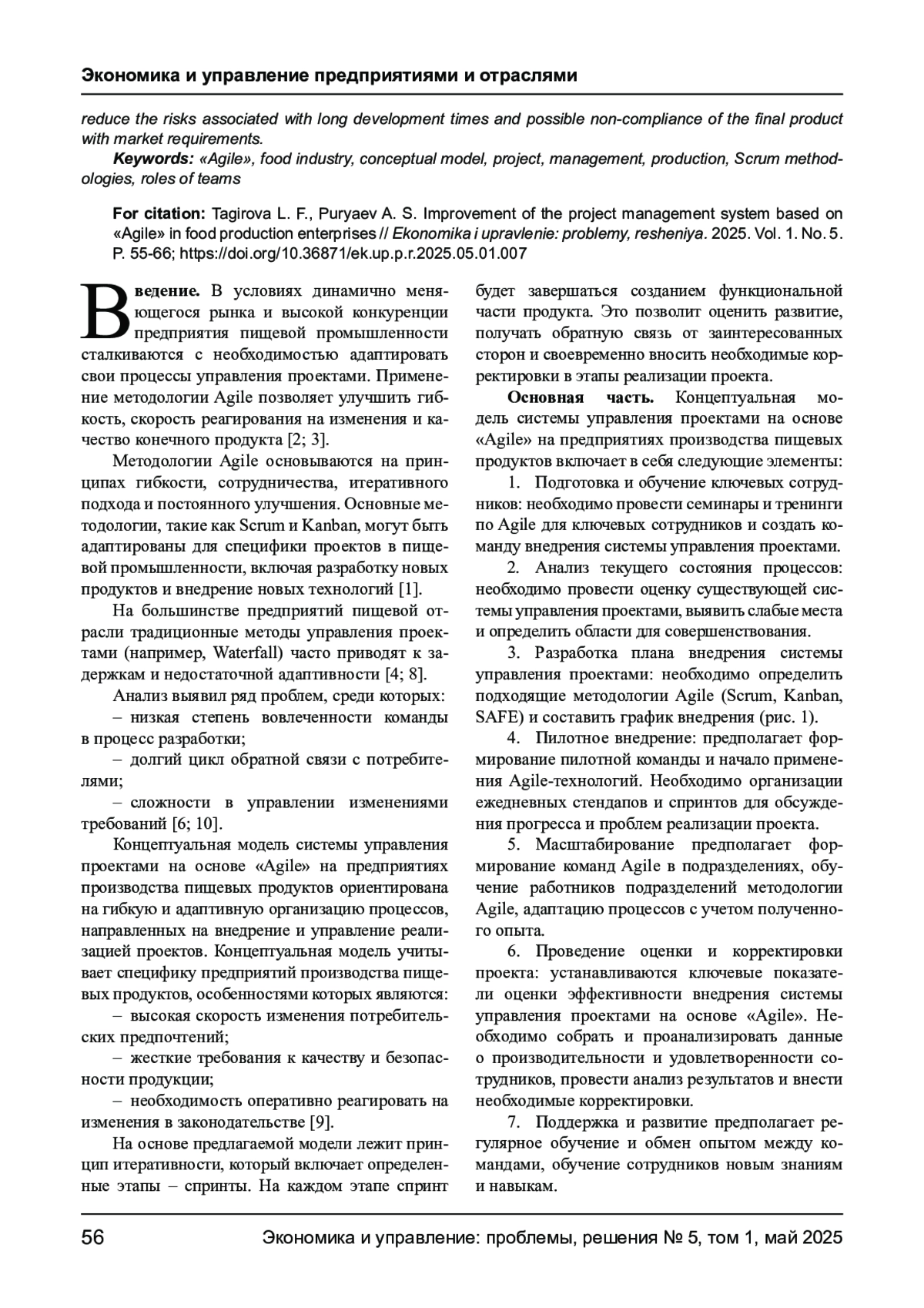 4. Буханов В. О., Газарян Г. С. Применение Agile - разработки программного обеспечения к процессам управления на пищевых производствах // Экономика: вчера, сегодня, завтра. 2023. Том 13. № 3А. С. 594-602. EDN: WNFLPK