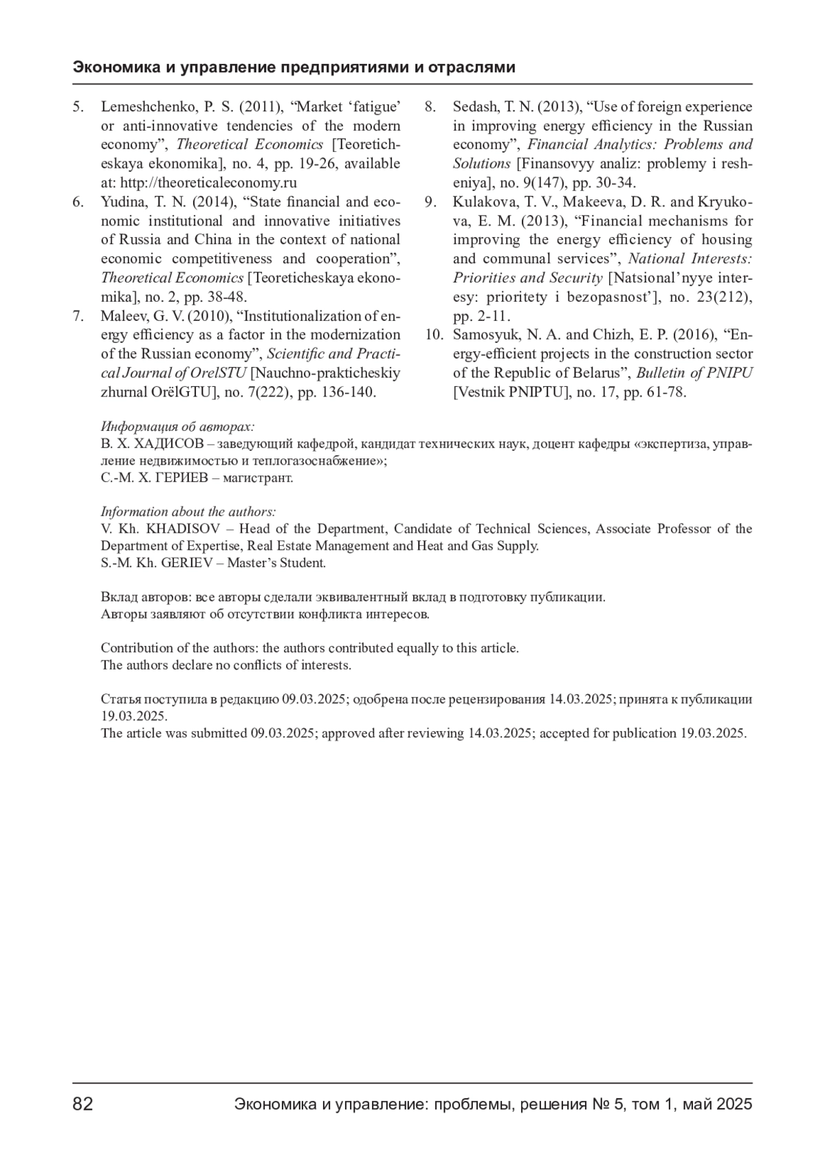 7. Малеев Г. В. Институционализация энергоэффективности как фактор модернизации российской экономики // Научно-практический журнал ОрелГТУ. 2010. № 7 (222). С. 136-140.