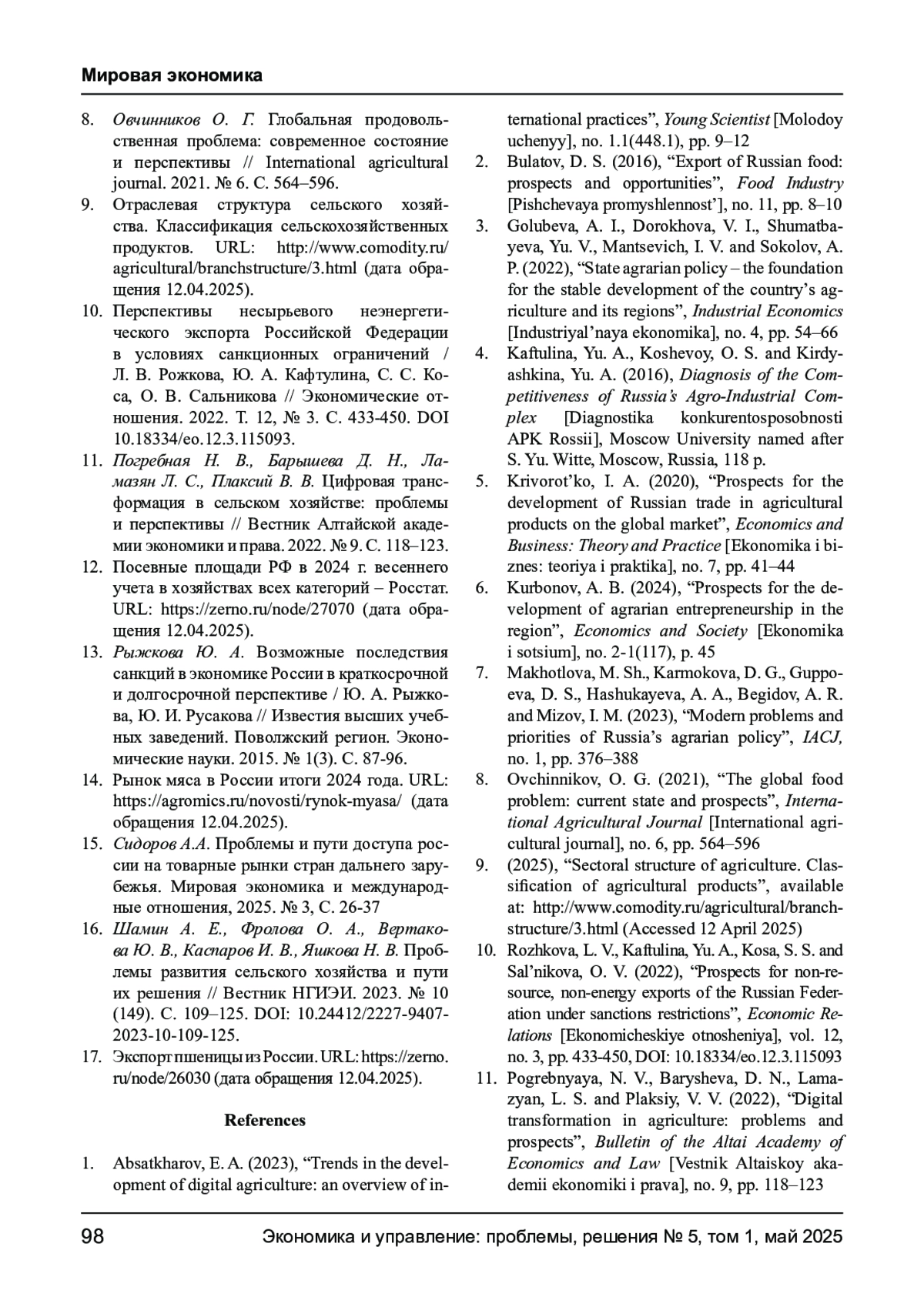 16. Сидоров А.А. Проблемы и пути доступа россии на товарные рынки стран дальнего зарубежья. Мировая экономика и международные отношения, 2025. № 3, С. 26-37. EDN: GZZROR