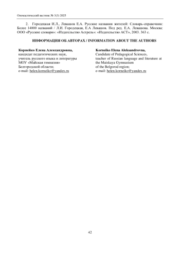 Аннотируемая статья посвящена исследованию структурно-семантических особенностей библионимов писателя-натуралиста Г. А. Скребицкого. Рассматривается специфика названия книг и рассказов Г. А. Скребицкого, определяющая ключевое направление развития его творческой деятельности. Анализируются композиционные приемы и выразительные средства, используемые писателем для обозначения собственных произведений, акцентируя внимание на природных объектах и животных, занимающих важное место в сюжетах его лите-ратуры. Исследование основывается на междисциплинарном подходе, сочетающем методы лингвистического анализа и теории номинации. Подчеркивается роль структуры и значения библионимов как важнейшего компонента в понимании общей концепции природоведческой прозы Г. А. Скребицкого. Описываются пути выражения автором своего отношения к природе посредством особых способов называния своих произведений. Кроме того, рассматривается взаимодействие формы и содержания библионимов, демонстрируя связь между названием и идейно-тематическим содержанием произведений писателя. Исследуется вклад структурно-семантических характеристик библионимов в формирование читательского восприятия и интерпретации художественных образов природы в литературе натуралистического направления. Они заключаются в их простоте, ясности, тематической направленности и способности вызывать интерес у читателя. Отмечается, что писатель использует разнообразные типы названий, чтобы отразить суть произведения, создать яркий образ и привлечь внимание к миру природы и животных. Это легко объяснить, зная цель автора: простота и доступность названий делают его произведения привлекательными для детской аудитории, помогая им познавать окружающий мир.