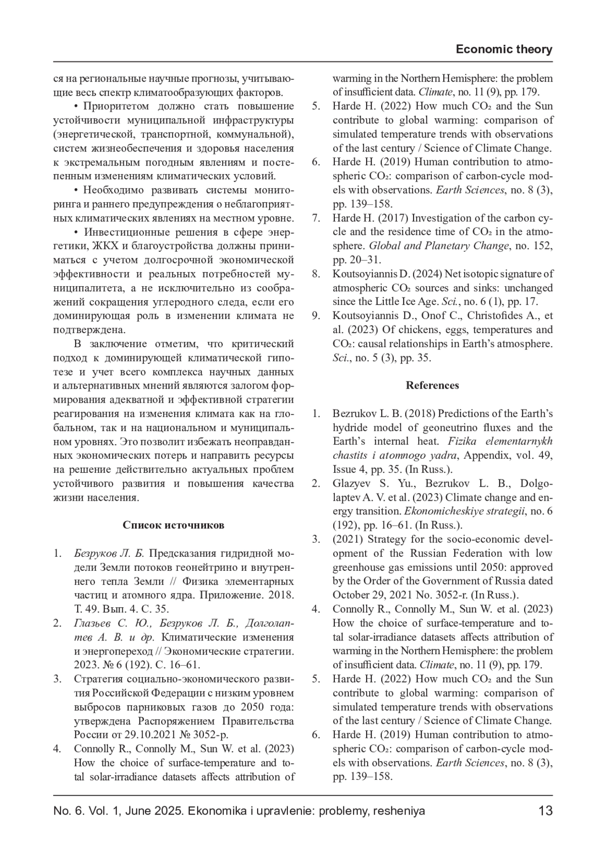 2. Глазьев С. Ю., Безруков Л. Б., Долголаптев А. В. и др. Климатические изменения и энергопереход // Экономические стратегии. 2023. № 6 (192). С. 16-61. EDN: UGBXRB