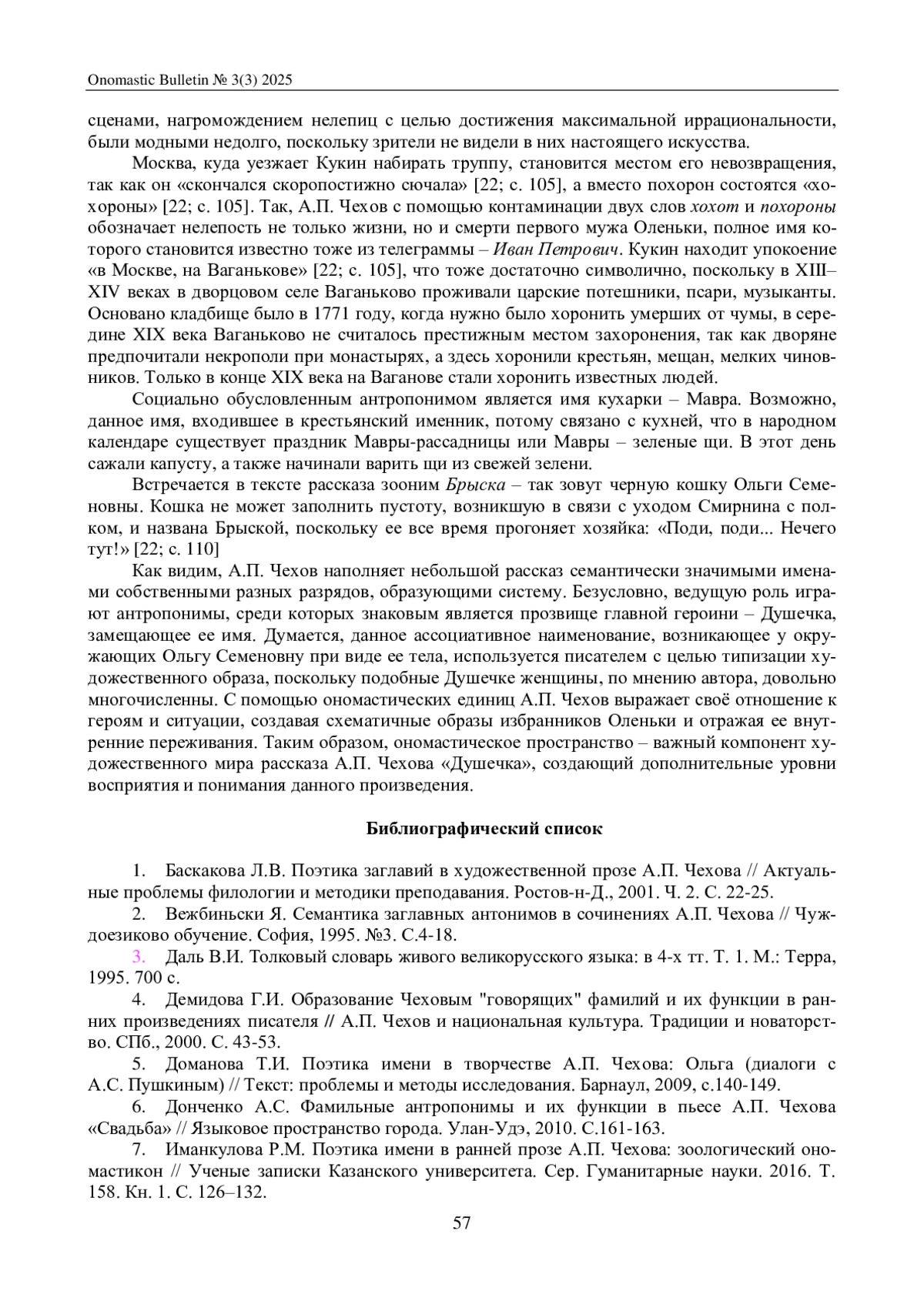 5. Доманова Т.И. Поэтика имени в творчестве А.П. Чехова: Ольга (диалоги с А.С. Пушкиным) // Текст: проблемы и методы исследования. Барнаул, 2009, с.140-149.