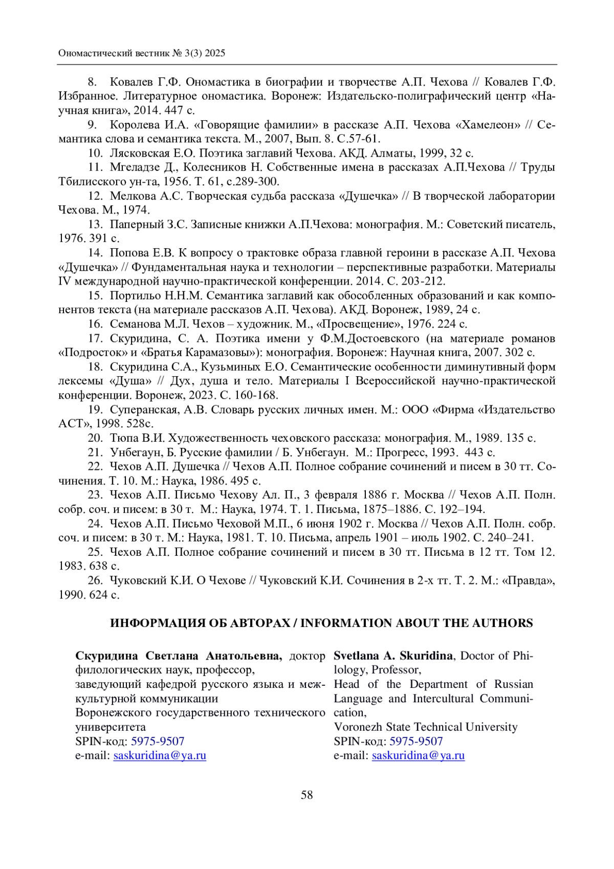 8. Ковалев Г.Ф. Ономастика в биографии и творчестве А.П. Чехова // Ковалев Г.Ф. Избранное. Литературное ономастика. Воронеж: Издательско-полиграфический центр “Научная книга”, 2014. 447 с.