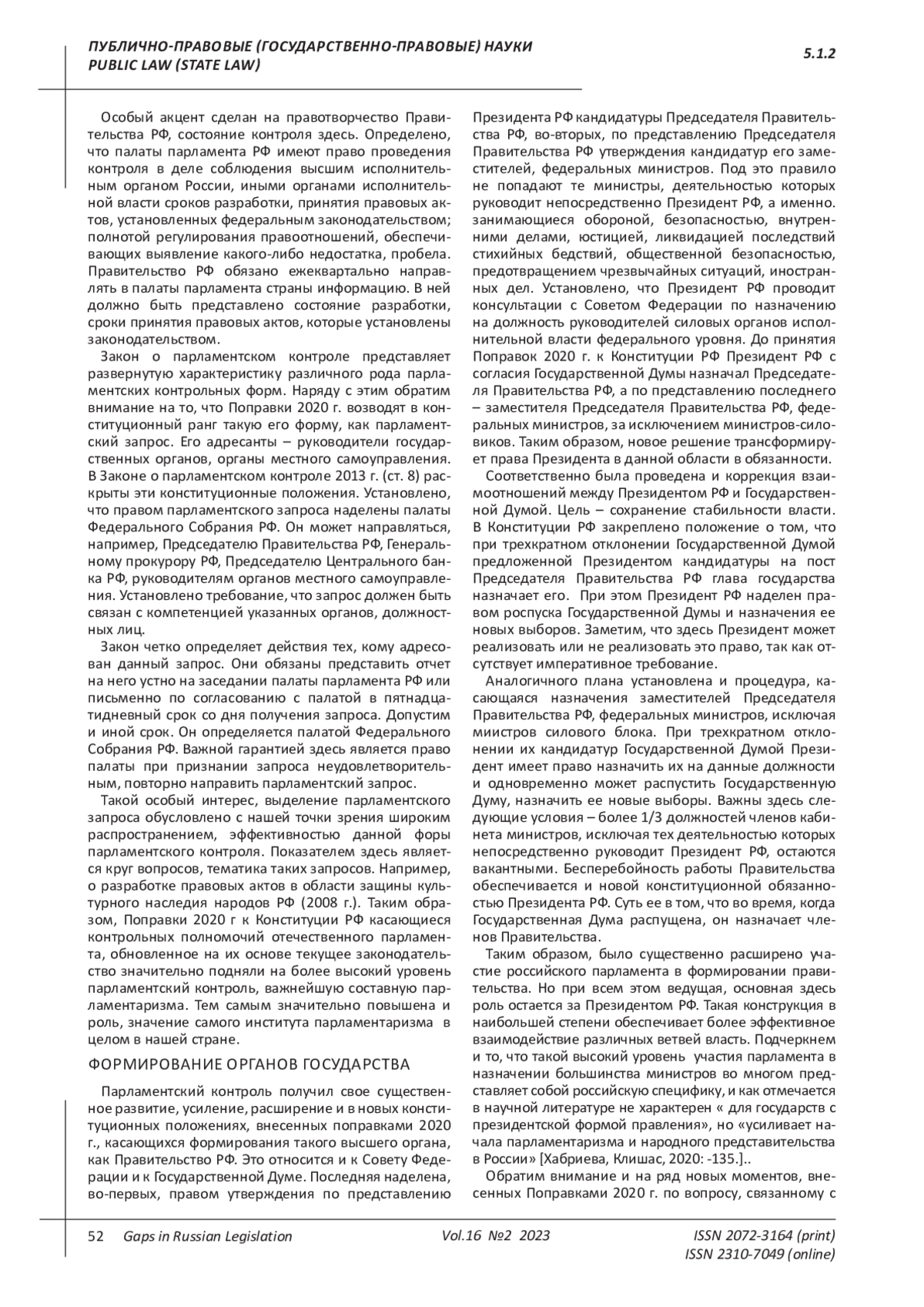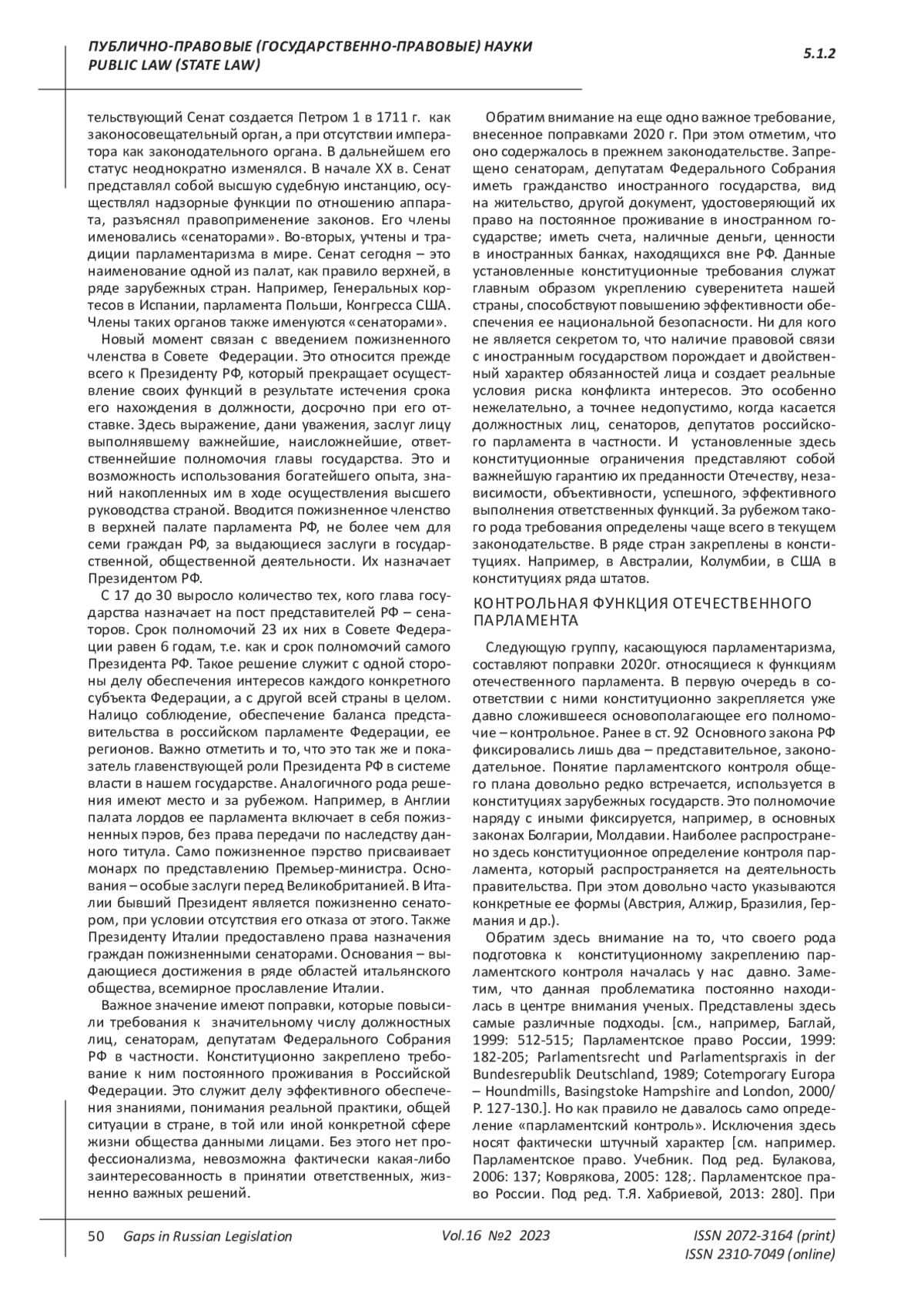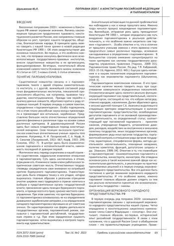 Статья: ПОПРАВКИ 2020 Г. К КОНСТИТУЦИИ РОССИЙСКОЙ ФЕДЕРАЦИИ И ПАРЛАМЕНТАРИЗМ (2023)