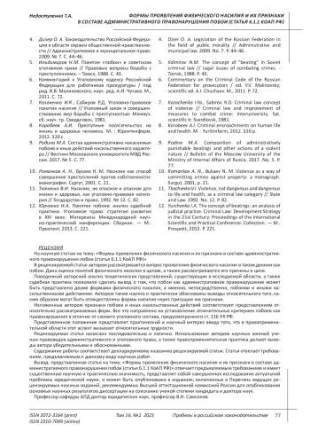 Статья: ФОРМЫ ПРОЯВЛЕНИЯ ФИЗИЧЕСКОГО НАСИЛИЯ И ИХ ПРИЗНАКИ В СОСТАВЕ АДМИНИСТРАТИВНОГО ПРАВОНАРУШЕНИЯ ПОБОИ (СТАТЬЯ 6.1.1 КОАП РФ) (2023)
