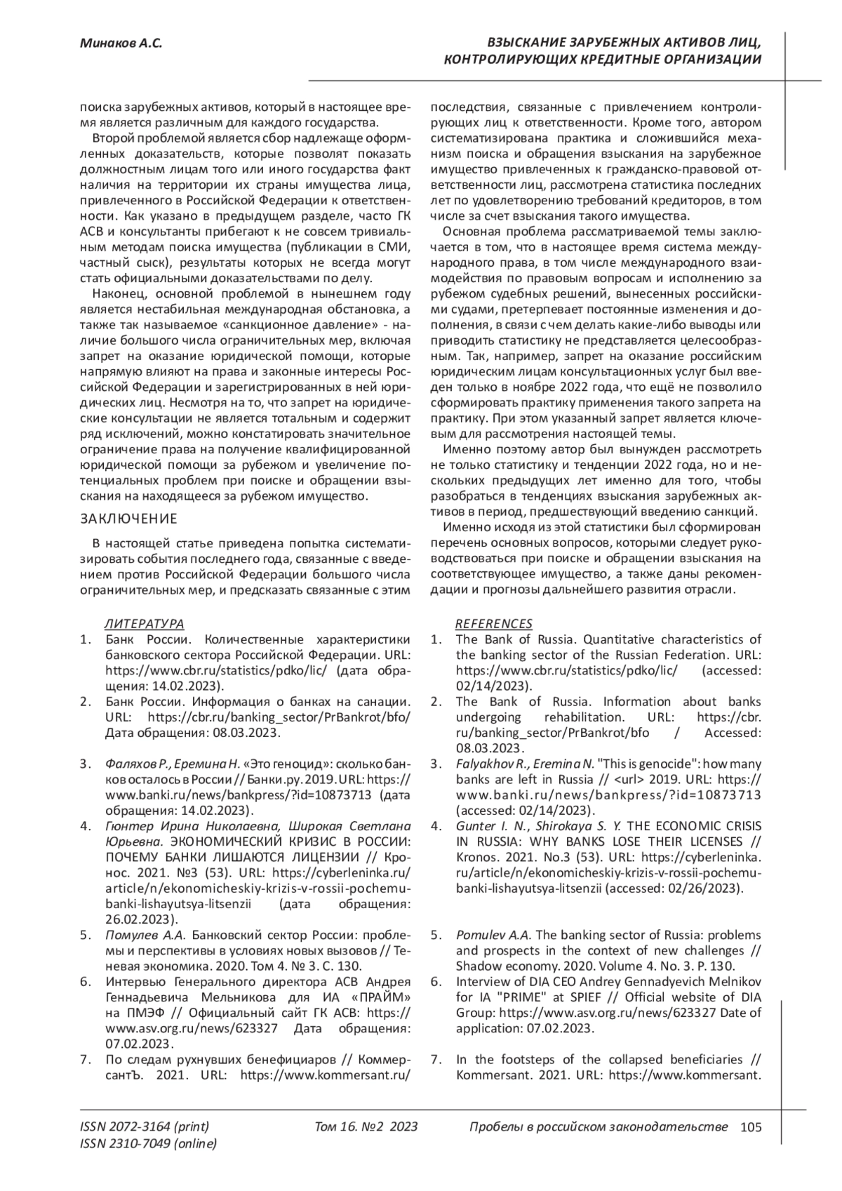 7. По следам рухнувших бенефициаров // КоммерсантЪ. 2021. URL: https://www.kommersant.ru/doc/4640850 Дата обращения: 26.02.2023.