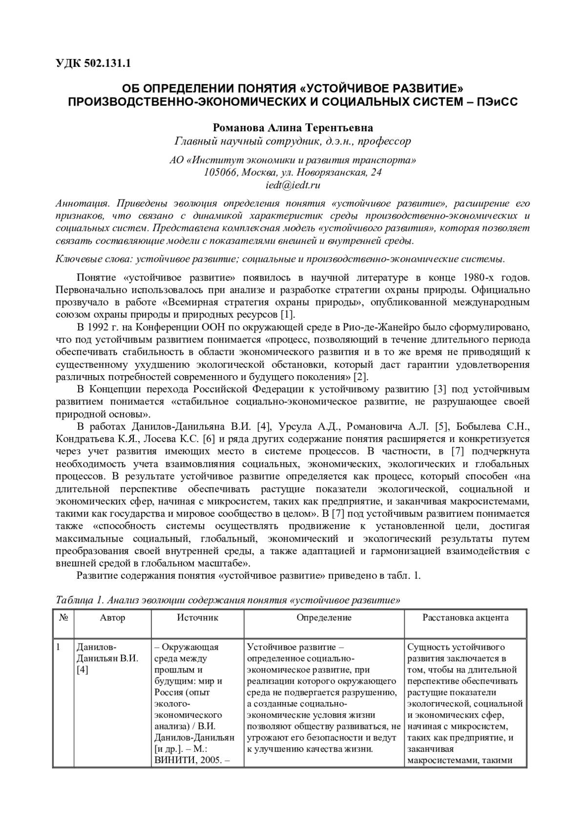 Приведены эволюция определения понятия «устойчивое развитие», расширение его признаков, что связано с динамикой характеристик среды производственно-экономических и социальных систем. Представлена комплексная модель «устойчивого развития», которая позволяет связать составляющие модели с показателями внешней и внутренней среды.