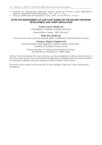3. Четчуев М.В. Иванков А.Н., Винник А.Д. Исследование подходов к обустройству инфраструктуры для временного отстоя вагонов на железных дорогах России в различные исторические периоды // Бюл. результатов науч. исслед. - 2024. - Вып. 3. - С. 128-141.