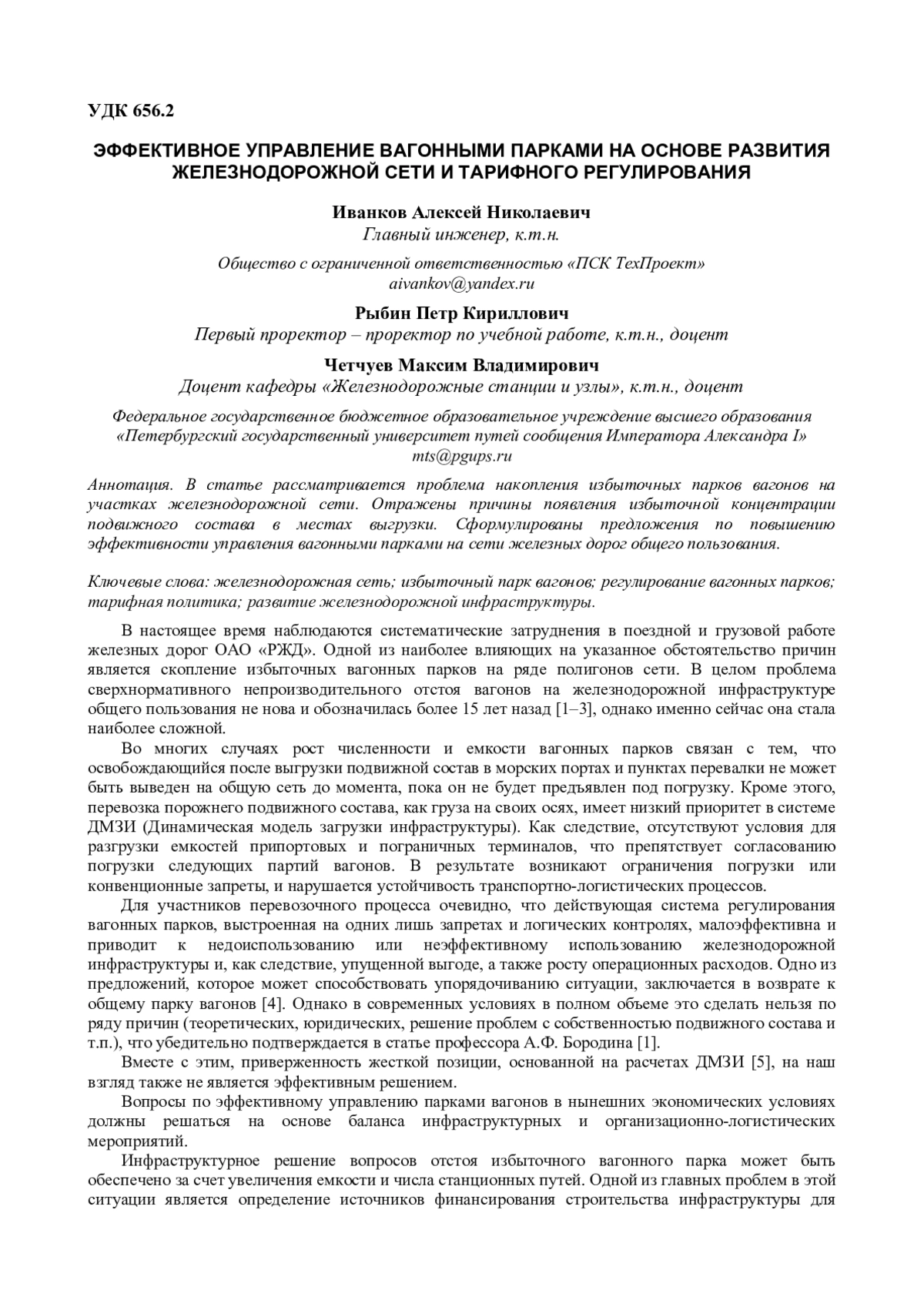 1. Бородин А.Ф. Емкость железных дорог и управление вагонными парками // РЖД-Партнер. - 2011. - № 5. - С. 32-34.