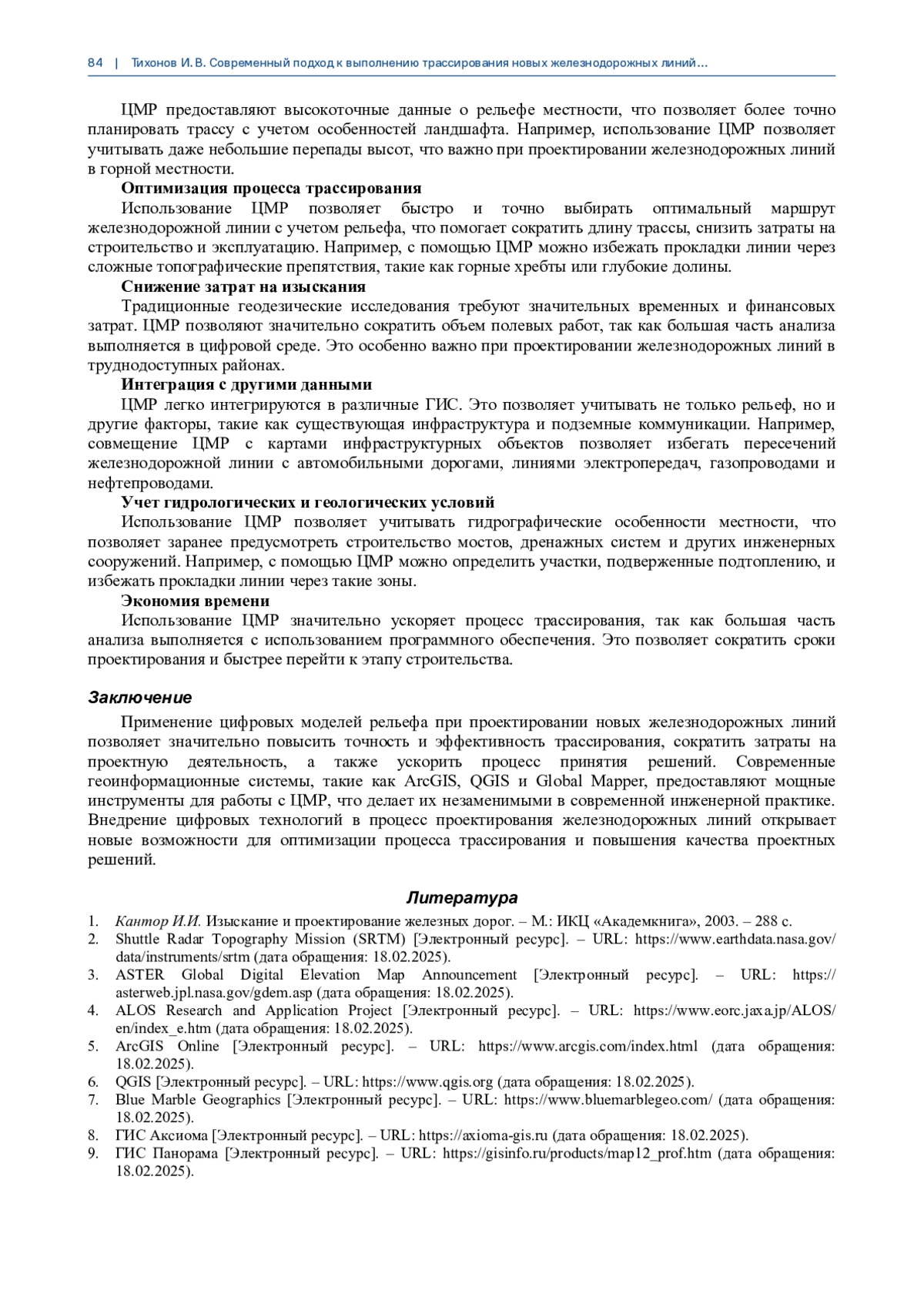 Статья: СОВРЕМЕННЫЙ ПОДХОД К ВЫПОЛНЕНИЮ ТРАССИРОВАНИЯ НОВЫХ ЖЕЛЕЗНОДОРОЖНЫХ ЛИНИЙ С ПРИМЕНЕНИЕМ АКТУАЛЬНЫХ ЦИФРОВЫХ МОДЕЛЕЙ РЕЛЬЕФА МЕСТНОСТИ (2025)
