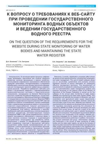 Статья: К ВОПРОСУ О ТРЕБОВАНИЯХ К ВЕБ-САЙТУ ПРИ ПРОВЕДЕНИИ ГОСУДАРСТВЕННОГО МОНИТОРИНГА ВОДНЫХ ОБЪЕКТОВ И ВЕДЕНИИ ГОСУДАРСТВЕННОГО ВОДНОГО РЕЕСТРА (2025)