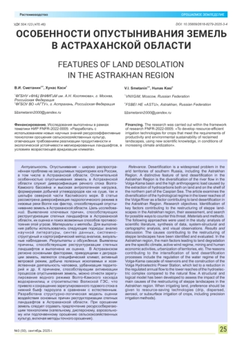 Статья: ОСОБЕННОСТИ ОПУСТЫНИВАНИЯ ЗЕМЕЛЬ В АСТРАХАНСКОЙ ОБЛАСТИ (2025)
