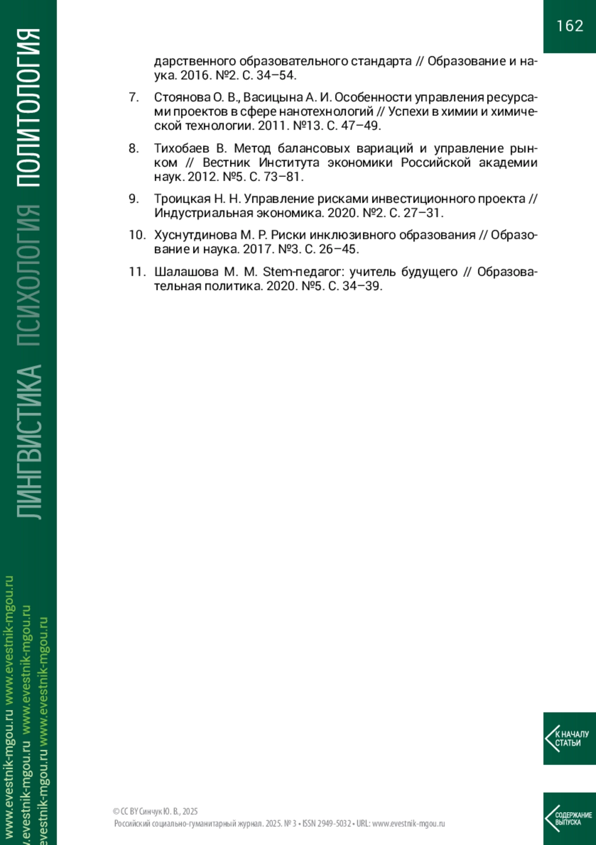 11. Шалашова М. М. Stem-педагог: учитель будущего // Образовательная политика. 2020. №5. С. 34-39.