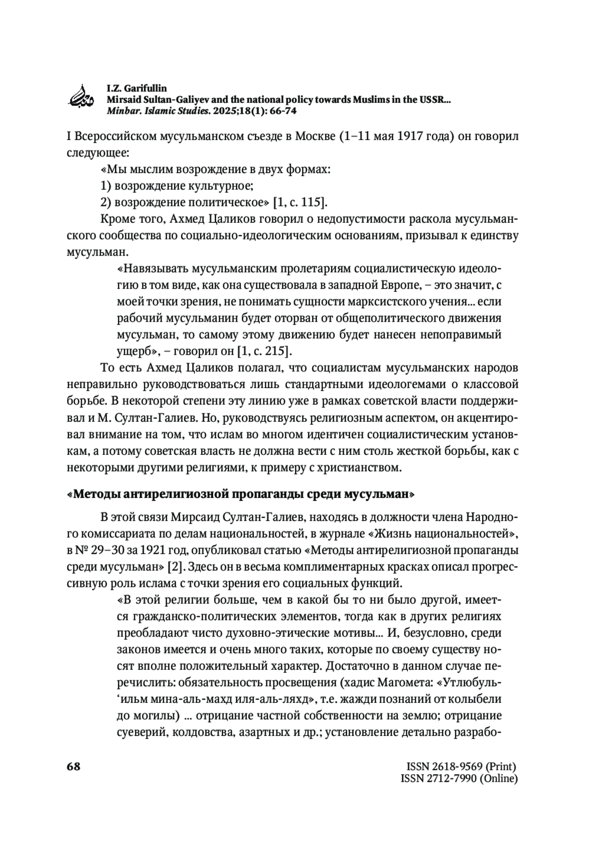 3. Исламгулова И. Р. Политические взгляды Мирсаида Султан-Галиева: автореф. дис. … канд. ист. наук. Уфа: Издательство Башкирского государственного университета; 2005. 22 с.