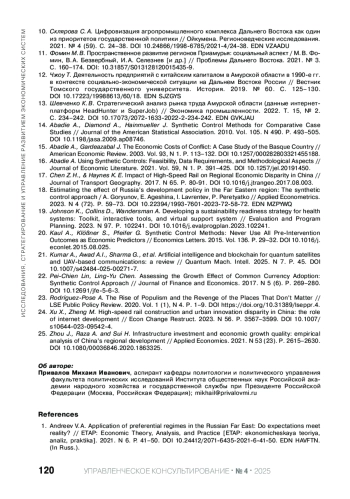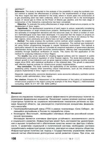 Ключевые фразы: РЕГИОНАЛЬНАЯ ПОЛИТИКА, экономическое развитие, социально-экономические показатели, метод синтетического контроля, государственное управление, АМУРСКАЯ ОБЛАСТЬ
