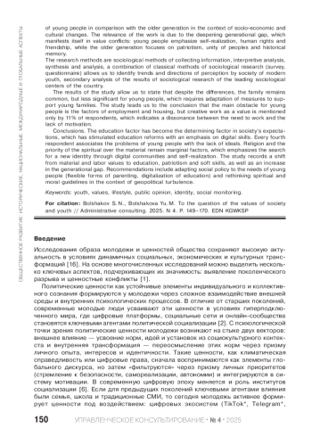 13. Палитай И. С. Особенности ценностных ориентаций современной российской молодежи // Молодежь и будущая Россия: Материалы IV Всероссийской конференции, Москва, 09- 10 октября 2024 года. М., 2025. С. 330-333.