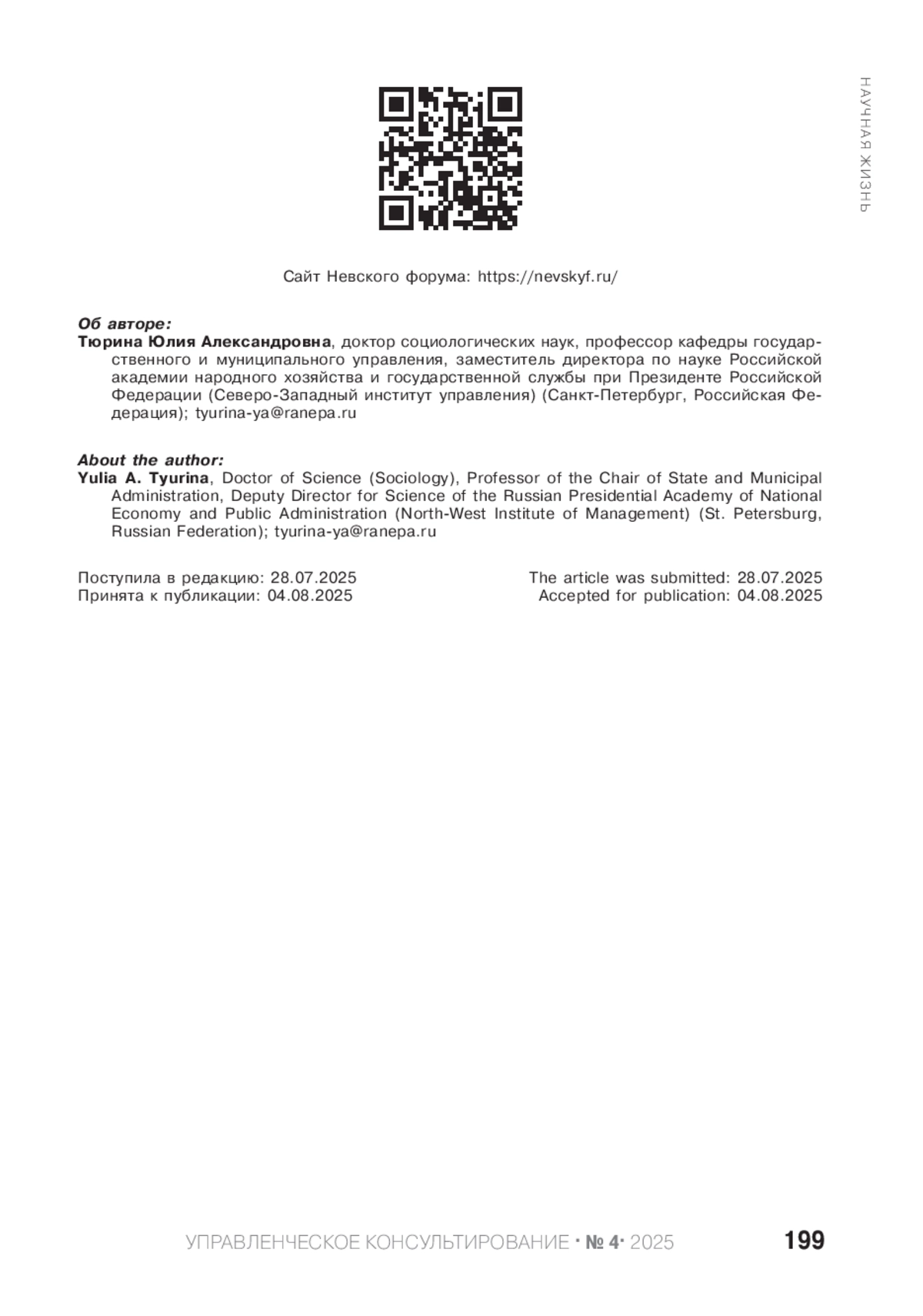 Для цитирования: Хлутков А. Д. Особые условия СВО и реконструкция системы государственного управления. Управленческое консультирование. 2025;(4):8. EDN: KDHYXY