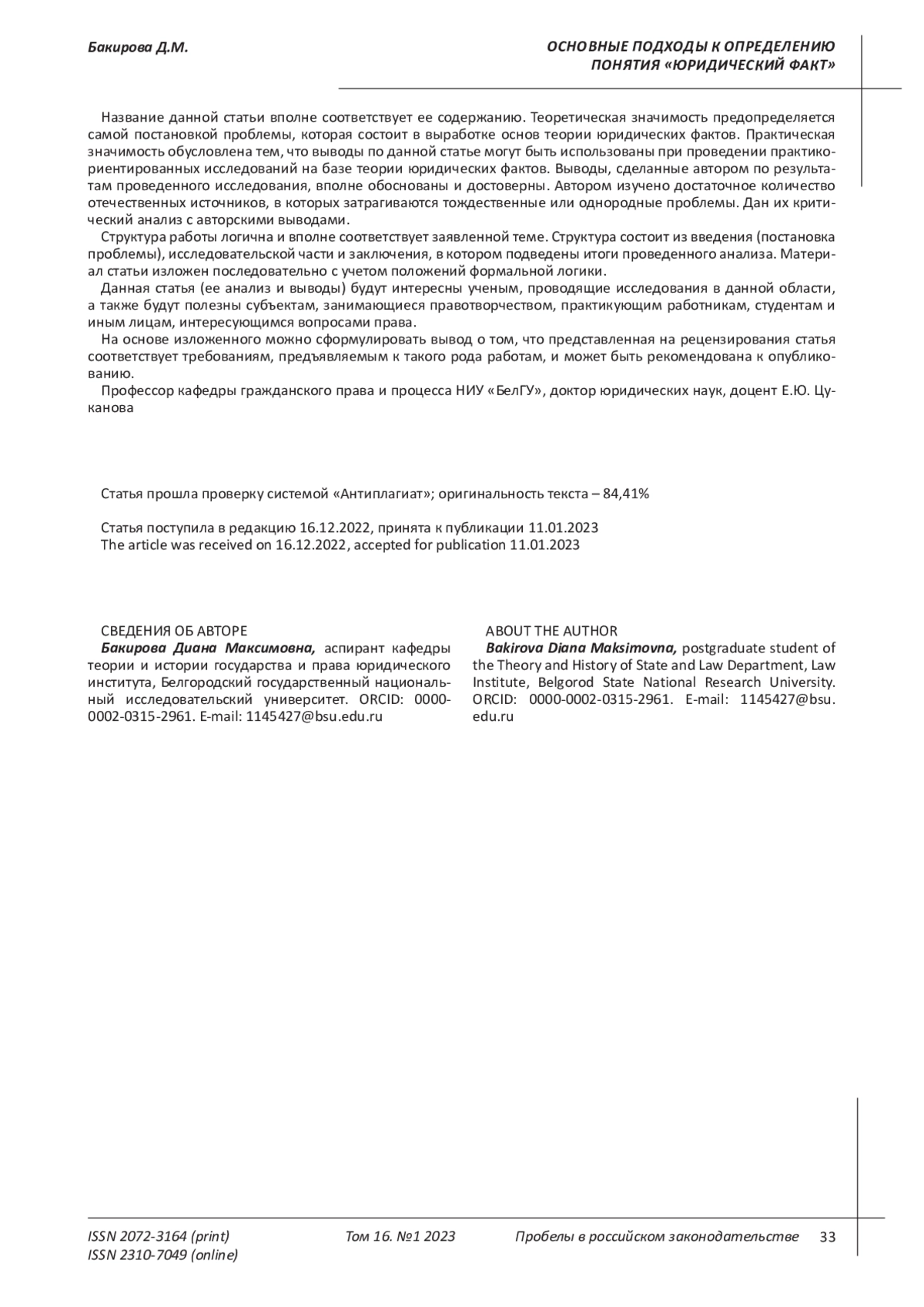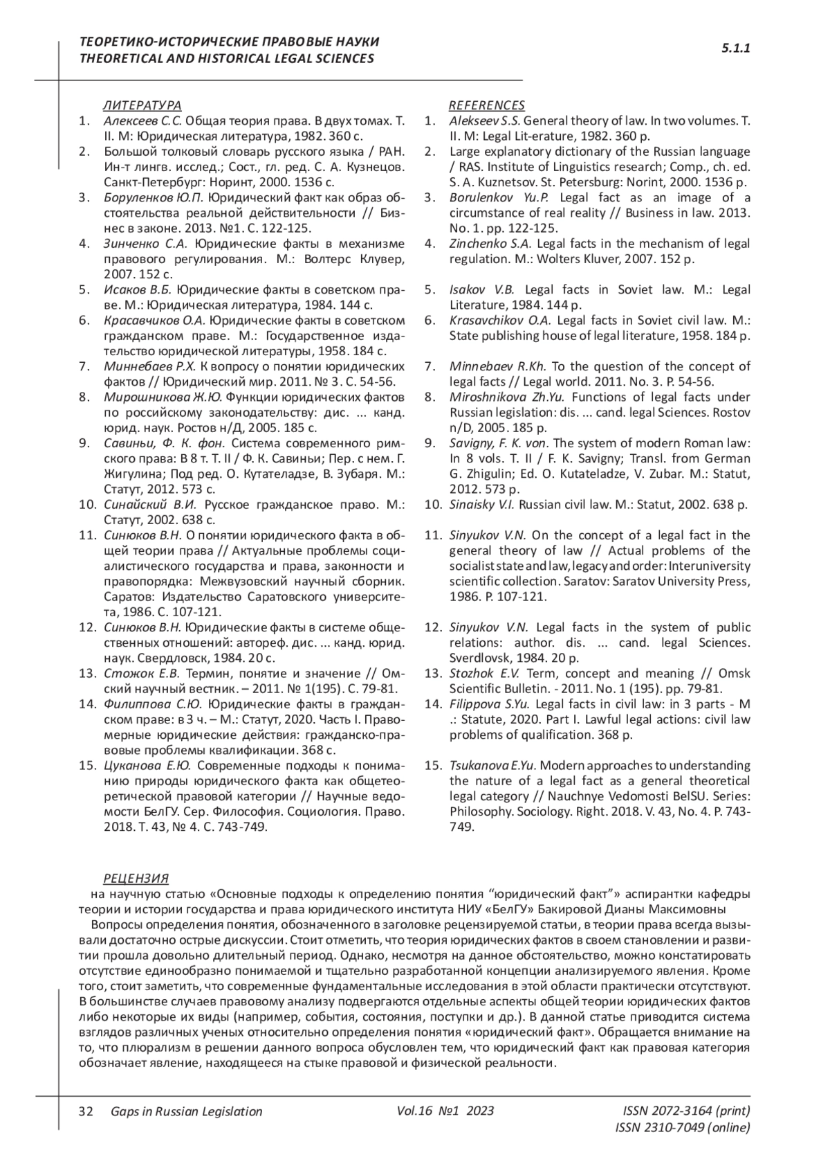 15. Цуканова Е.Ю. Современные подходы к пониманию природы юридического факта как общетеоретической правовой категории // Научные ведомости БелГУ. Сер. Философия. Социология. Право. 2018. Т. 43, № 4. С. 743-749. EDN: YSUPJR