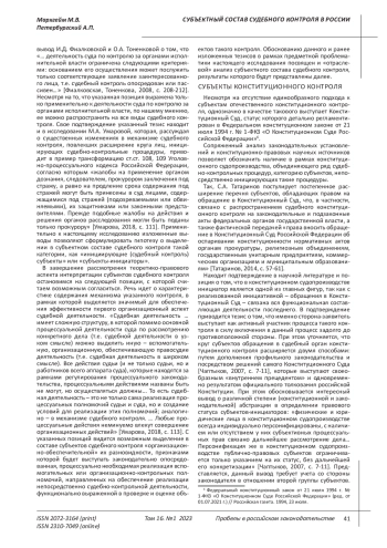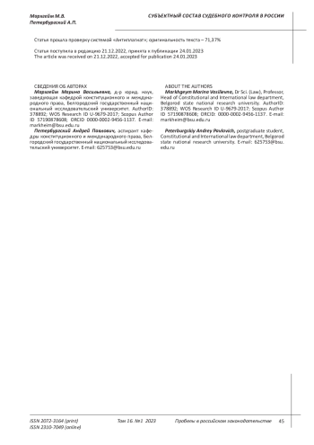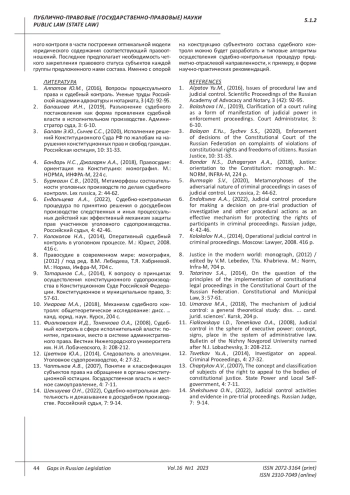 Alpatov Yu.M., (2016), Issues of procedural law and judicial control. Scientific Proceedings of the Russian Academy of Advocacy and Notary, 3 (42): 92-95.
