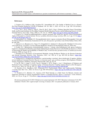 11. Новикова А.В., Широков В.А., Егорова А.М. Напряженность труда как фактор риска развития синдрома эмоционального выгорания и тревожно-депрессивных расстройств в различных профессиональных группах (обзор литературы) // Здоровье населения и среда обитания. 2022. Т. 30, No 10. С. 67-74. DOI: 10.35627/2219-5238/2022-30-10-67-74