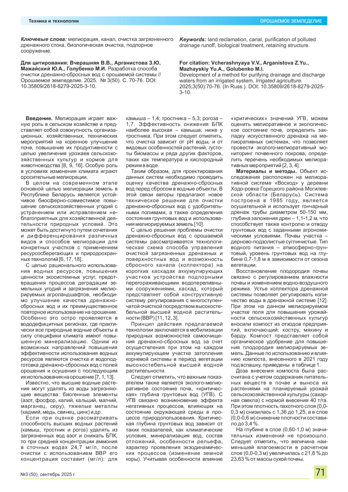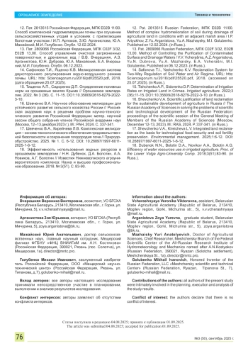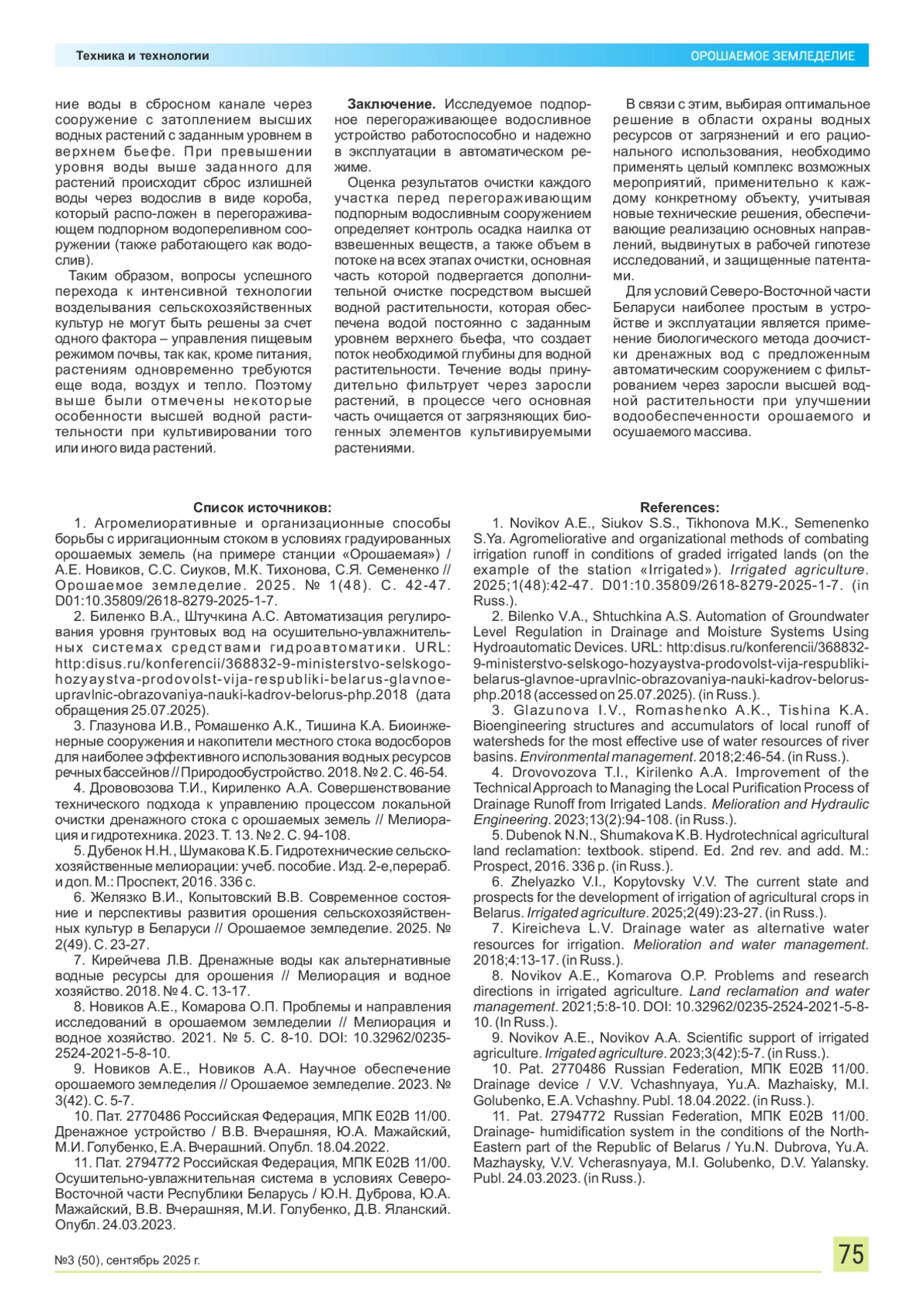 14. Сафонова Т.И., Ященко К.В. Мелиоративная система двухстороннего регулирования водно-воздушного режима почвы. URL: htts: Sciencegorum.ru/2016/pdf/25520.pdf, 2018. (дата обращения 25.07.2025).