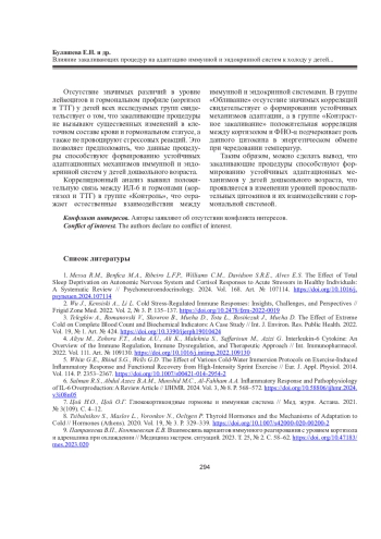 2. Wu J., Kensiski A., Li L. Cold Stress-Regulated Immune Responses: Insights, Challenges, and Perspectives // Frigid Zone Med. 2022. Vol. 2, No 3. P. 135-137. DOI: 10.2478/fzm-2022-0019