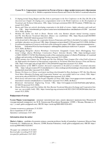 5. Шэньхуа хусюэ хуцзянь юй хэцзо. Чжунъэ чжие цзяоюй ляньмэн чэнли (深化互学互鉴与合作!中俄 职业教育联盟成立). URL: https://hlj.cnr.cn/jdt/20230803/t20230803_526361447.shtml (дата обращения: 21.10.2024).