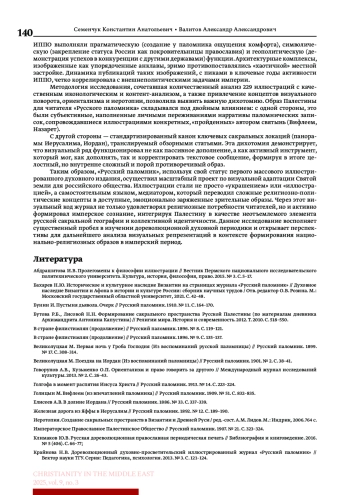 23. Пересыпкин О.Г. Культурно-исторический феномен “Русская Палестина” // Научно-аналитический журнал Обозреватель - Observer. 2016. № 8 (319). С. 105-121.