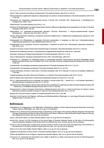 41. Solovieva O. Not Tourists, but Pilgrims: Defining and Defending Modern Pilgrimage in a Late Imperial Russian Periodical // Religions. 2022. T. 13. № 672. P. 1-18.