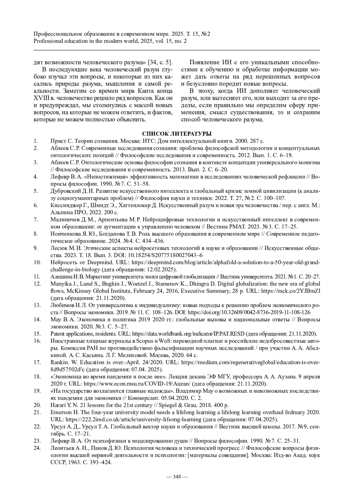 32. Брызгалина Е.В. Искусственный интеллект в образовании. Анализ целей внедрения // Человек. 2021. Т. 32, № 2. С. 9-29.