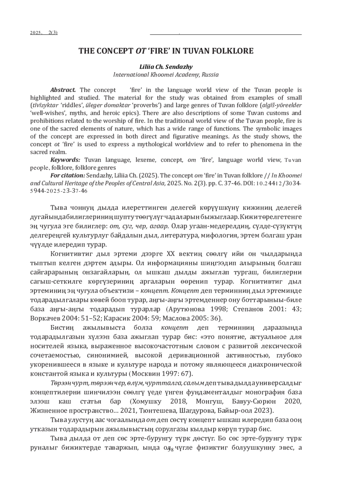 20. Тюнтешева Е. В., Шагдурова О. Ю., Байыр-оол А. В. Концепт СУДЬБА в языковой картине мира тюрков Южной Сибири // Тенденции развития когнитивной лингвистики и лингвокультурологии в XXI в.; Серия “Концептуальный и лингвальный миры”. Вып. 24. 2024. С. 168-180.