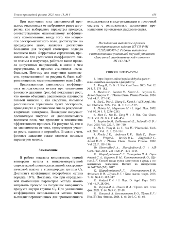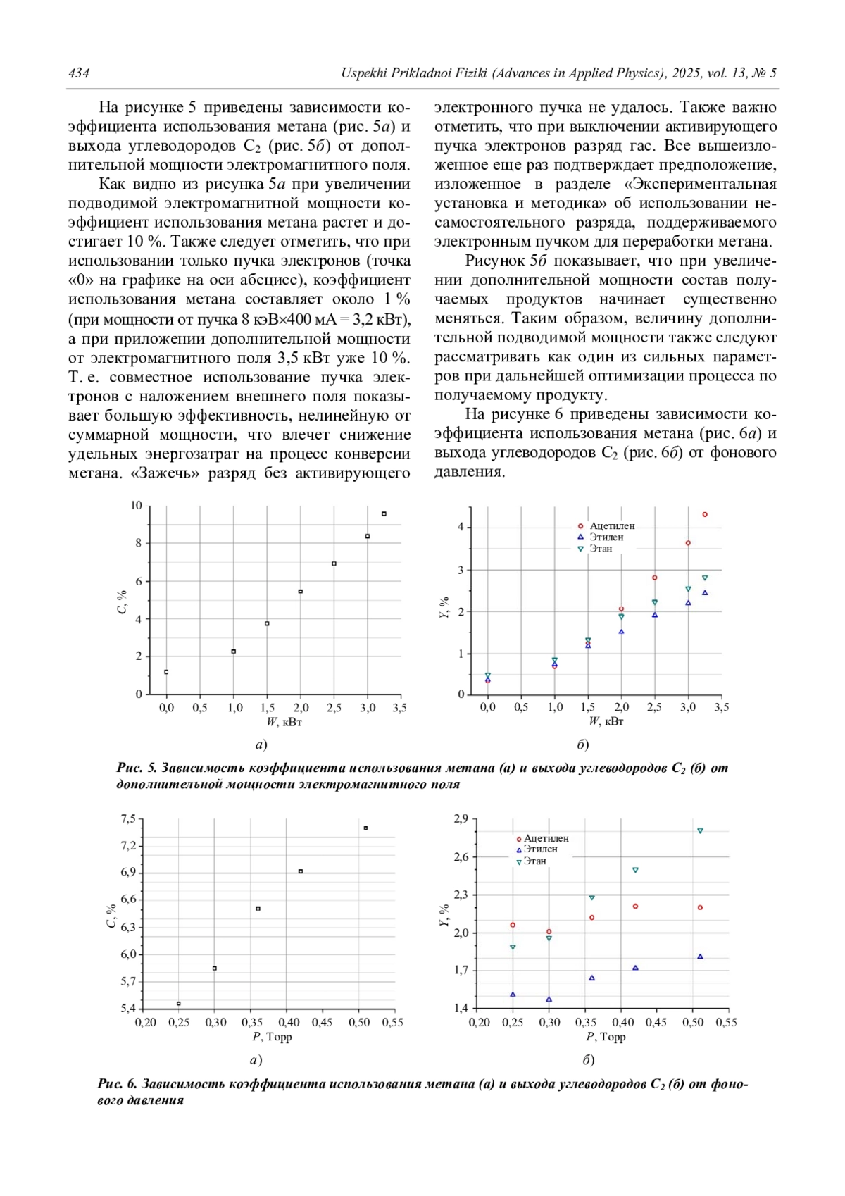 Представлены результаты конверсии метана в углеводороды группы С2 в холодной, химически активной, сверхзвуковой электронно-пучковой плазме. Получены зависимости коэффициента использования метана и выхода продуктов от энергии и тока активирующего пучка электронов, дополнительной электромагнитной мощности, а также фонового давления. Показано, что за счет изменения вышеуказанных параметров возможно изменение состава получаемых продуктов.
